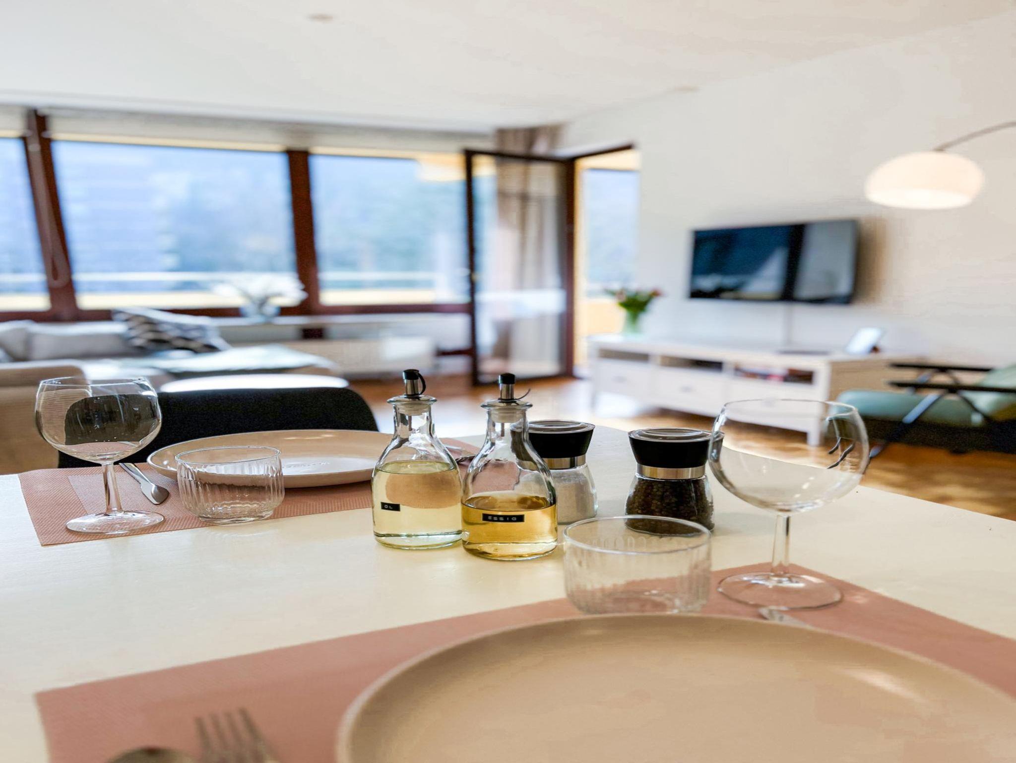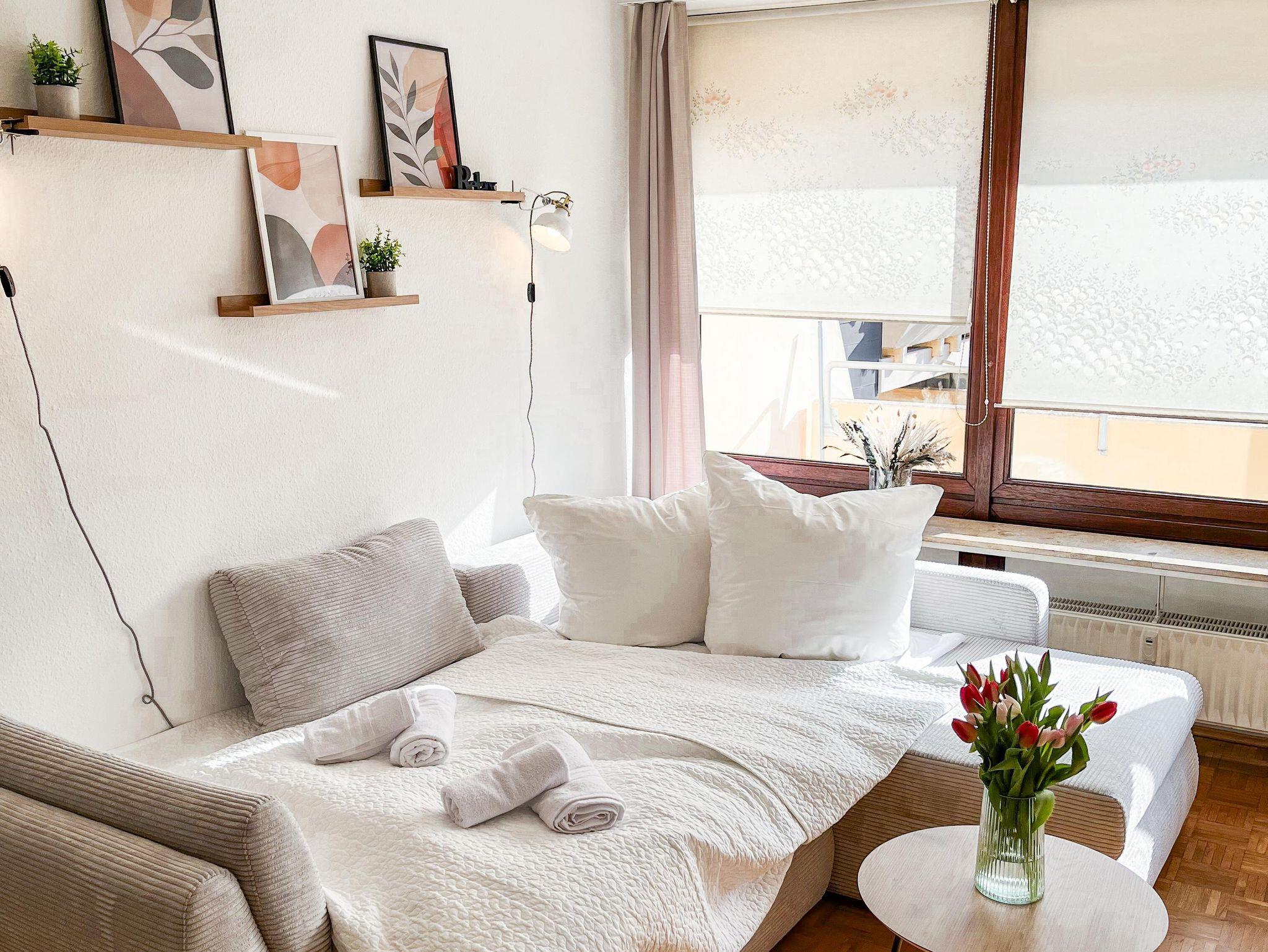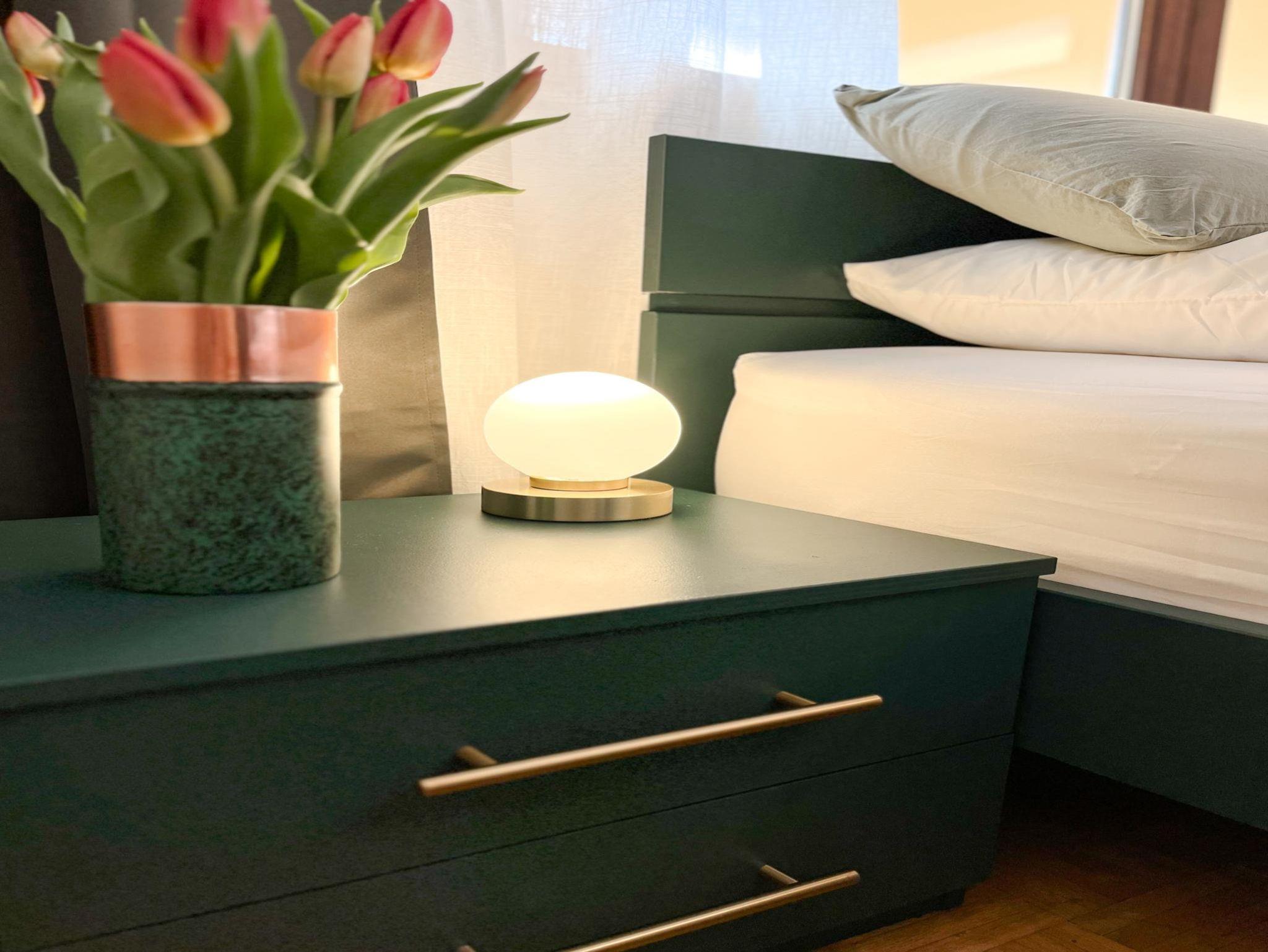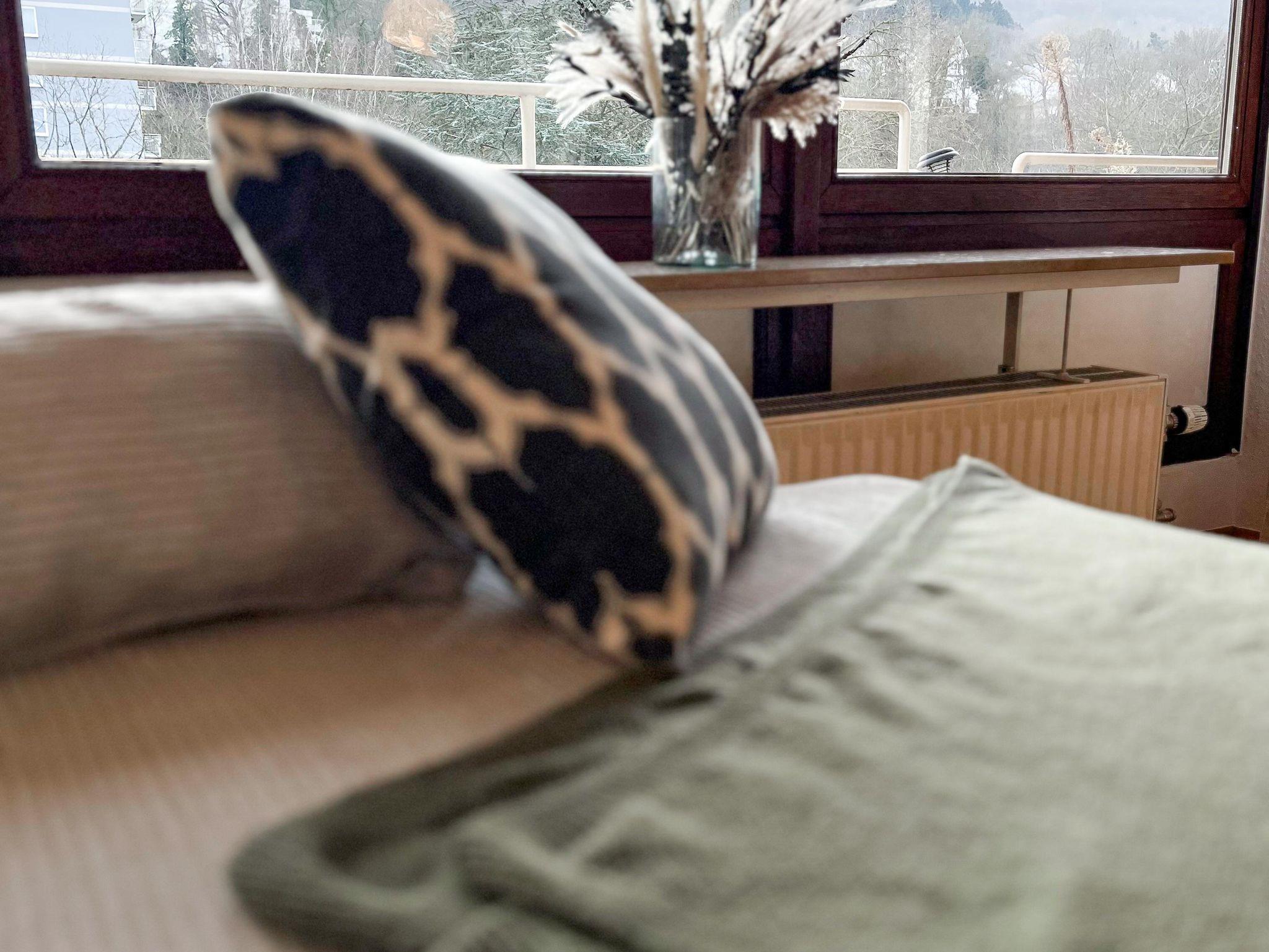 Das ca. 67 m² große, moderne Apartment im 3. Stock bietet eine komfortable und stilvolle Ausstattung für bis zu vier Personen. Es verfügt über ein separates Schlafzimmer mit Doppelbett sowie ein großzügiges Wohnzimmer mit gemütlicher Schlafcouch (1,30m) für 1-2 weitere Gäste, Sitzbereich und Smart-TV mit Streaming-Funktionen. Die voll ausgestattete Küche umfasst unter anderem Geschirrspüler, Kaffeemaschine, Wasserkocher, Gefrierschrank sowie alle notwendigen Kochutensilien und einen Esstisch. Ein besonderes Highlight ist die große, überdachte Loggia mit Süd-Ost-Ausrichtung und schönem Ausblick ins Grüne, die sich ideal für entspannte Stunden im Freien eignet. Das Badezimmer ist modern ausgestattet und bietet unter anderem eine Regendusche, Haartrockner sowie Pflegeprodukte. Zusätzlich stehen eine Waschmaschine, kostenfreies WLAN, ein Arbeitsplatz sowie eine kleine Bluetooth Soundbox zur Verfügung. Hochwertige Bettwäsche und Handtücher sind inklusive, ebenso ein praktisches Willkommens-Set mit Kaffee, Tee und Küchen-Basics. Die Wohnung ist barrierefrei zugänglich und bietet durchdachte Annehmlichkeiten für einen rundum angenehmen Aufenthalt. Rauchen ist im Apartment nicht gestattet.
