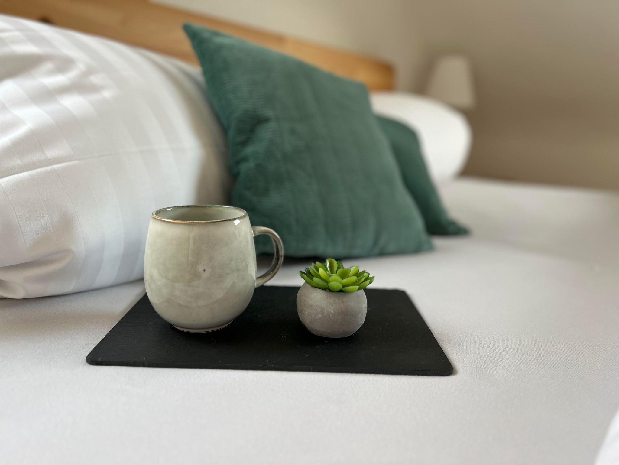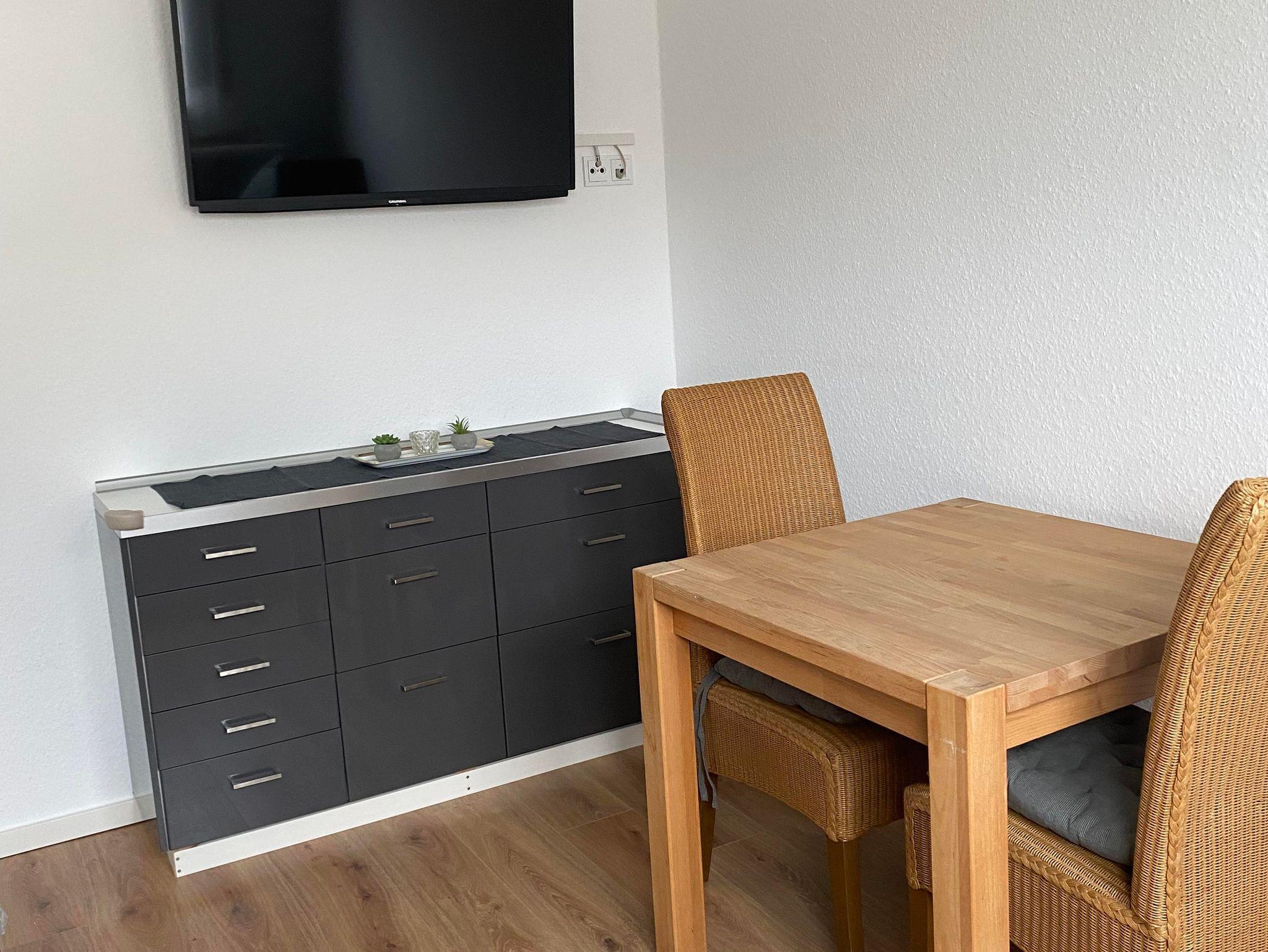 Die Küche bietet alles was das Herz begehrt. So haben sie mit der Mikrowelle die Möglichkeit für einen schnellen warmen Imbiss und auf dem ebenso vorhandenen E-Herd mit Backofen können auch umfangreiche, warme Mahlzeiten zubereitet werden. Selbstverständlich sind dazu alle Kochutensilien inklusive Geschirr und Besteck ebenfalls vorrätig, sodass sie sich bei der Anreise dazu sicherlich keine Gedanken machen müssen. Nach dem Essen sorgt die eingebaute Spülmaschine schnell wieder für Ordnung in der Küche und der große Kühlschrank bietet genug Platz für alle benötigten Vorräte. Selbstverständlich ist eine Kaffeemaschine für einen „Gutenmorgen-Kaffee“ auch in einer gut sortierten Küche vorhanden. Ein Starterpaket für die Küche liegt bereit. Ein grosser Flachbildschirm als Smart TV ist zum Fernsehschauen in der Küche samt kleiner Couch, damit das Schlafzimmer ein Ruheraum sein kann. Zum Streamen steht kostenlos ein Wlan zur Verfügung.