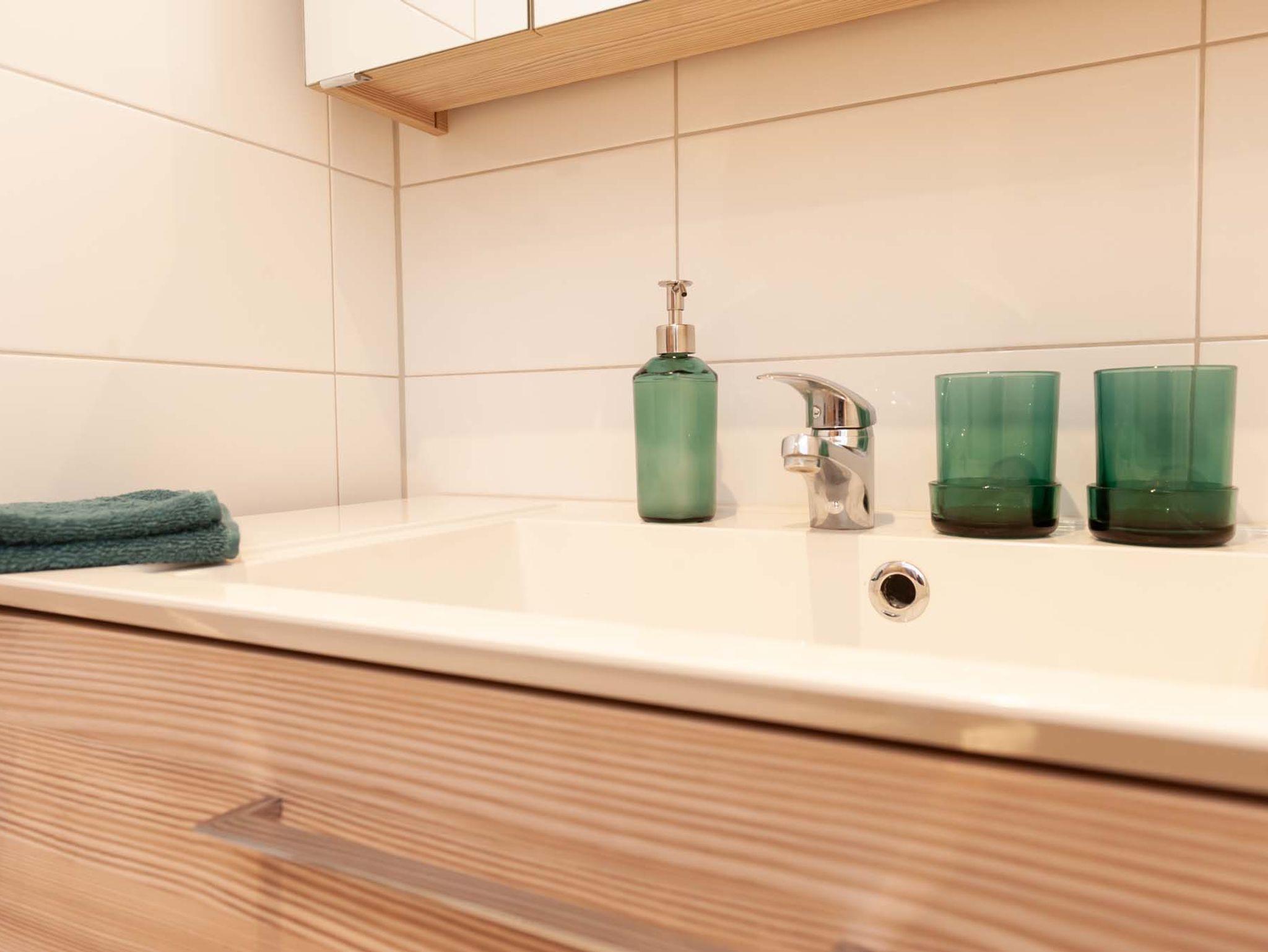 In unserem Apartment erwartet Sie eine gelungene Kombination aus hochwertigen Möbeln und topmoderner Ausstattung, die Ihnen einen rundum gelungenen Aufenthalt verspricht. Unsere moderne, vollausgestattete Küche lässt keine Wünsche offen und bietet neben sämtlichen Kochutensilien auch Öl, Essig und Gewürze für Ihre kulinarischen Genüsse. Eine Senseo Kaffeemaschine mit Pads steht ebenfalls zur Verfügung. Sie wohnen auf 55qm auf einer Etage und einem kleinen gemütlichen Garten