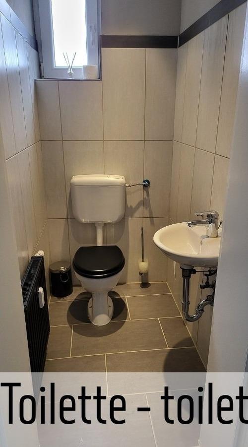 Die Toilette ist getrennt vom übrigen Badezimmer.
