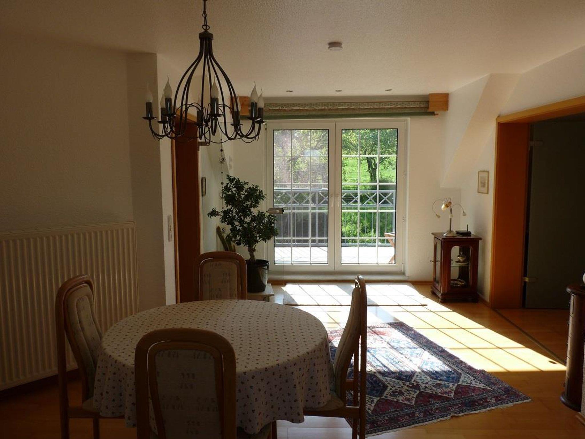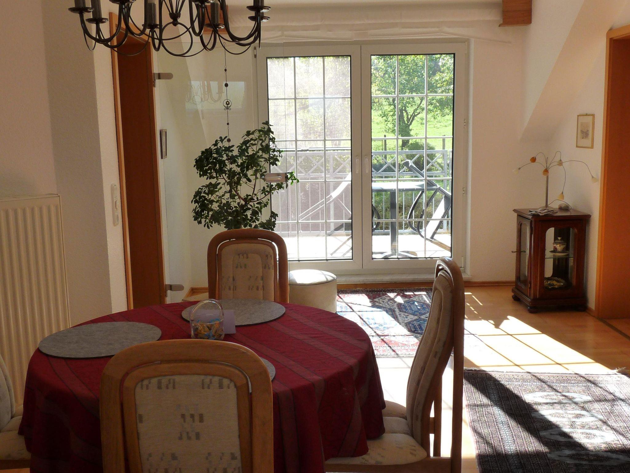 Sie beinhaltet ein großzügiges Wohn-Eßzimmer mit einem Balkon mit wunderbarer Aussicht in die weite Natur des Weserberglandes.