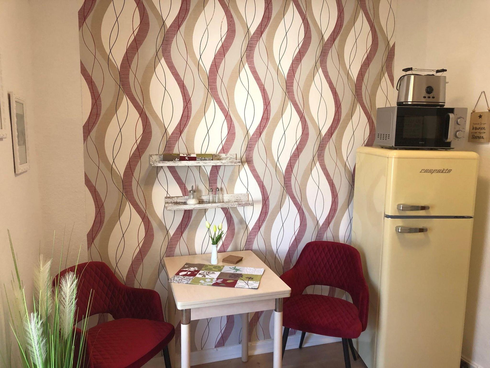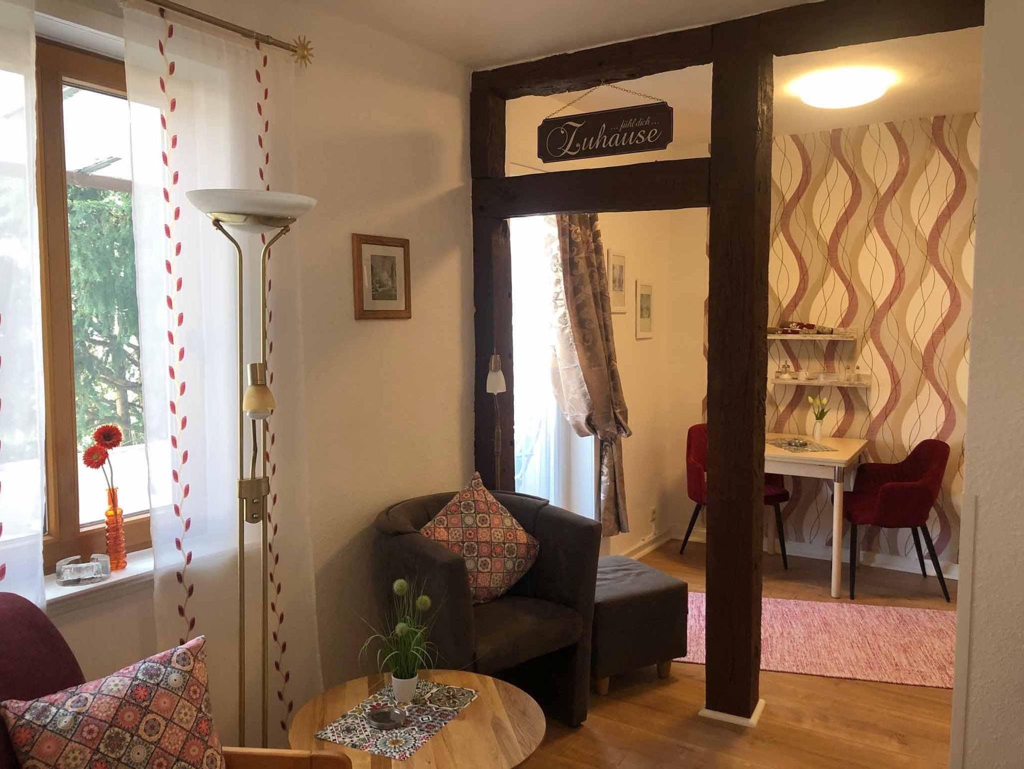 Das 2-Raum Appartement Nr. 5 liegt in der 1. Etage und verfügt über ein Schlafzimmer mit Doppelbett, einen Wohnraum, einen Essplatz, eine kleine Küche mit Geschirrspüler, ein Badezimmer mit Du/WC und einen Balkon mit Gartenmöbeln. TV im Wohnzimmer und auch im Schlafzimmer bieten Abwechslung. Das Appartement wurde Anfang 2022 fertiggestellt und ist komplett neu eingerichtet. Es besticht durch sein offenes Fachwerk im Wohnraum, seine behagliche Atmospähre und der mit sehr viel Liebe zum Detail gewählten Einrichtung. Der Balkon ist überdacht und kann daher auch bei einem leichten Sommerabend genutzt werden. Ideal für einen Kur- oder Urlaubsaufenthalt oder auch für eine längere Geschäftsreise gibt es im Appartementhaus Blume eine Waschmaschine sowie einen Trockner zur eigenen Benutzung gegen eine kleine Gebühr. Ihr Auto steht auf den hauseigenen Parkplätzen entweder direkt am oder hinter dem Haus.