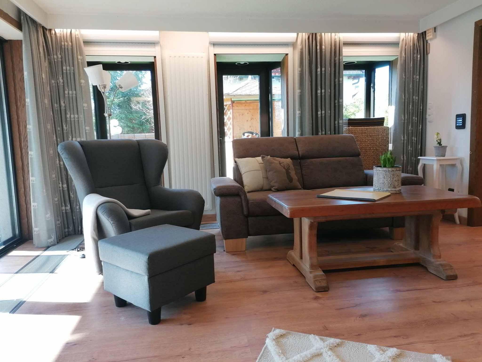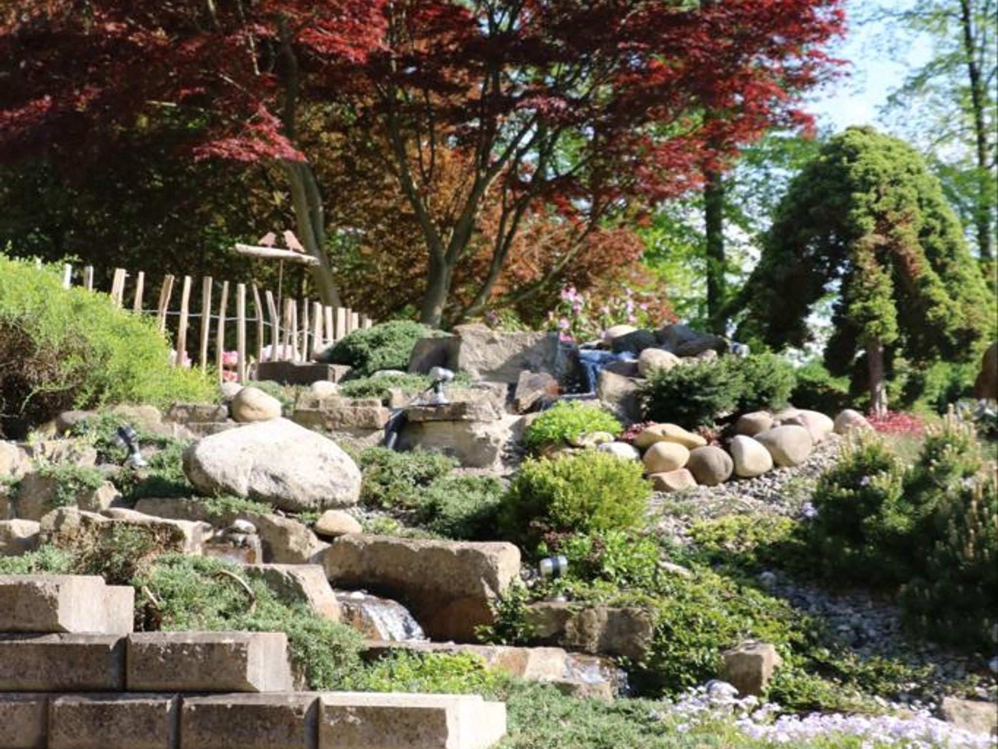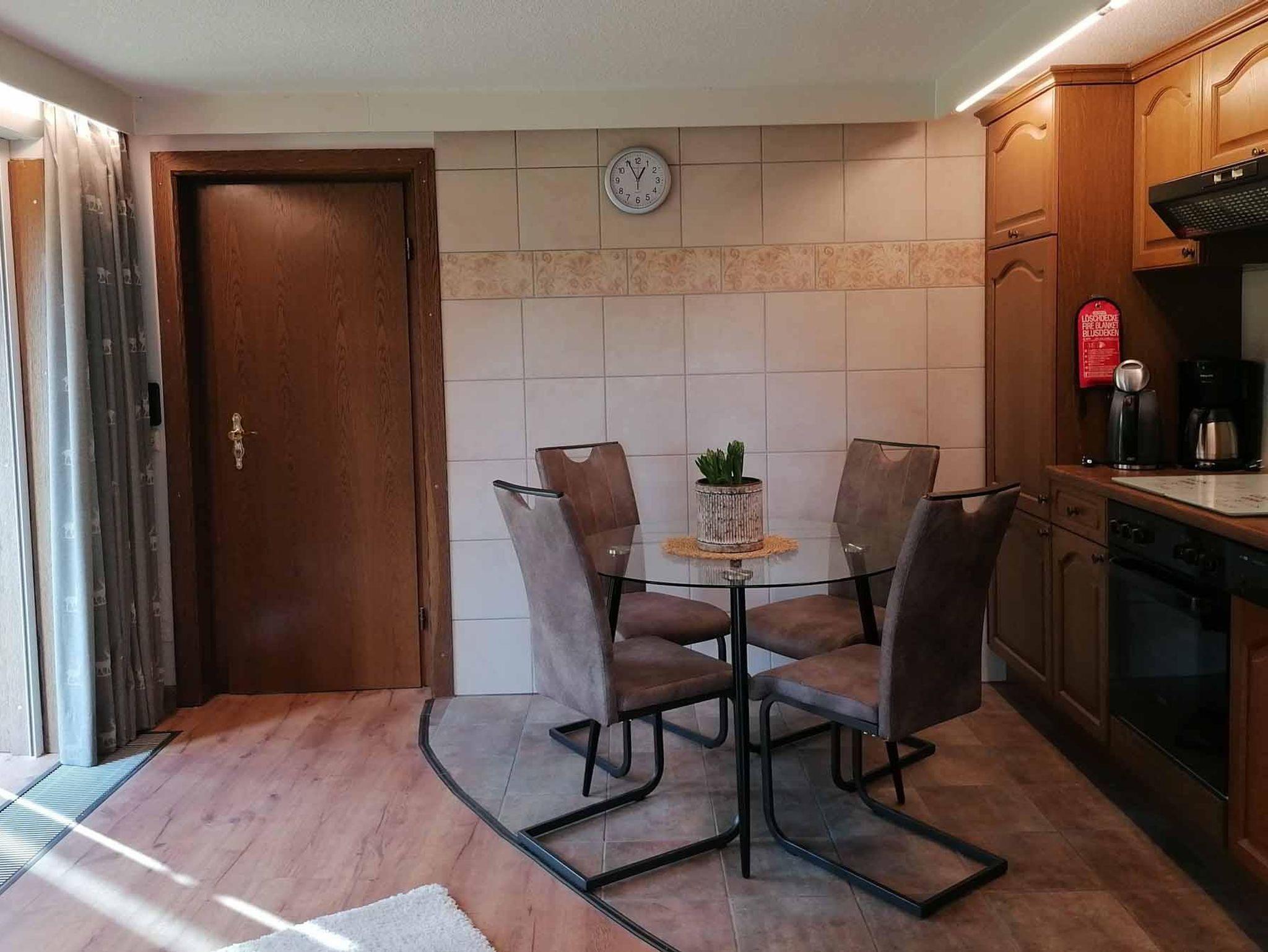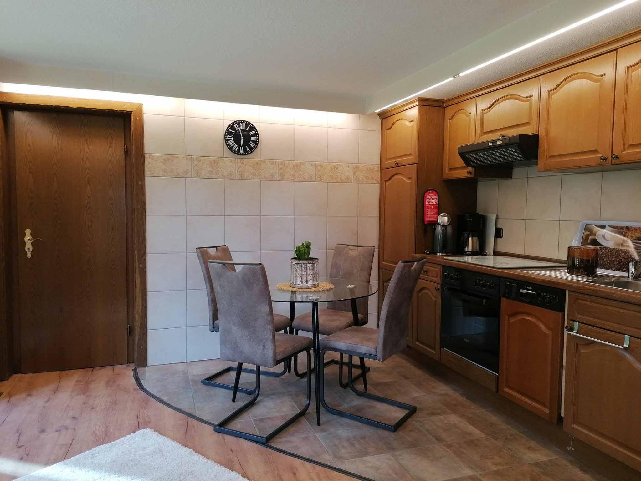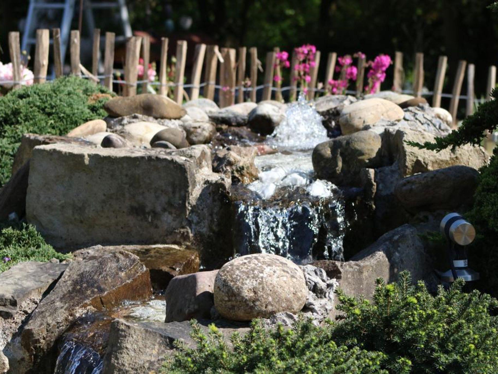 die ca. 60 qm große Ferienwohnung im Erdgeschoss ist im Landhausstil eingerichtet. Sie liegt auf Gartenhöhe und ist vom zugehörigen Stellplatz über eine breite Treppe direkt zu erreichen. Hinter dem Eingang befindet sich ein kleiner Windfang, von dem man zur Ferienwohnung sowie zum zusätzlich buchbaren Schlafzimmer inkl. Dusch-WC für eine weitere Person gelangt. Im Eingangsbereich der Ferienwohnung liegt die gut ausgestattete Küche mit einem Esstischbereich für 2-3 Personen. Der Raum geht offen in das Wohnzimmer mit bequemer Couch und einem komfortablen Fernsehsessel zum Lesen und Relaxen über. Direkt an das Wohnzimmer schließt sich der Schlafraum mit einem hochwertigen Boxspringbett (Größe:180x200cm und Höhe 60cm) an. Die beiden Räume lassen sich durch eine Schiebetür trennen. Das am Schlafzimmer anliegende Bad ist mit bodengleicher großer Dusche und 2 Waschbecken ausgestattet. Ein WC mit Handwaschbecken ist separat neben dem Bad. Vom Wohnzimmer aus kommt man auf eine überdachte, ca 20qm große Terrasse, gelegen an einem Bachlauf, der am Abend dezent beleuchtet wird. Auf der Terrasse haben Sie Sitzmöglichkeiten, einen Tisch und Gartenliegen zum Aufenthalt im Freien. Zur Wohnung gehört auch ein separater Gartenanteil Süd-Westausrichtung mit einem Pavillon und einer Liegewiese für sonnige Momente.