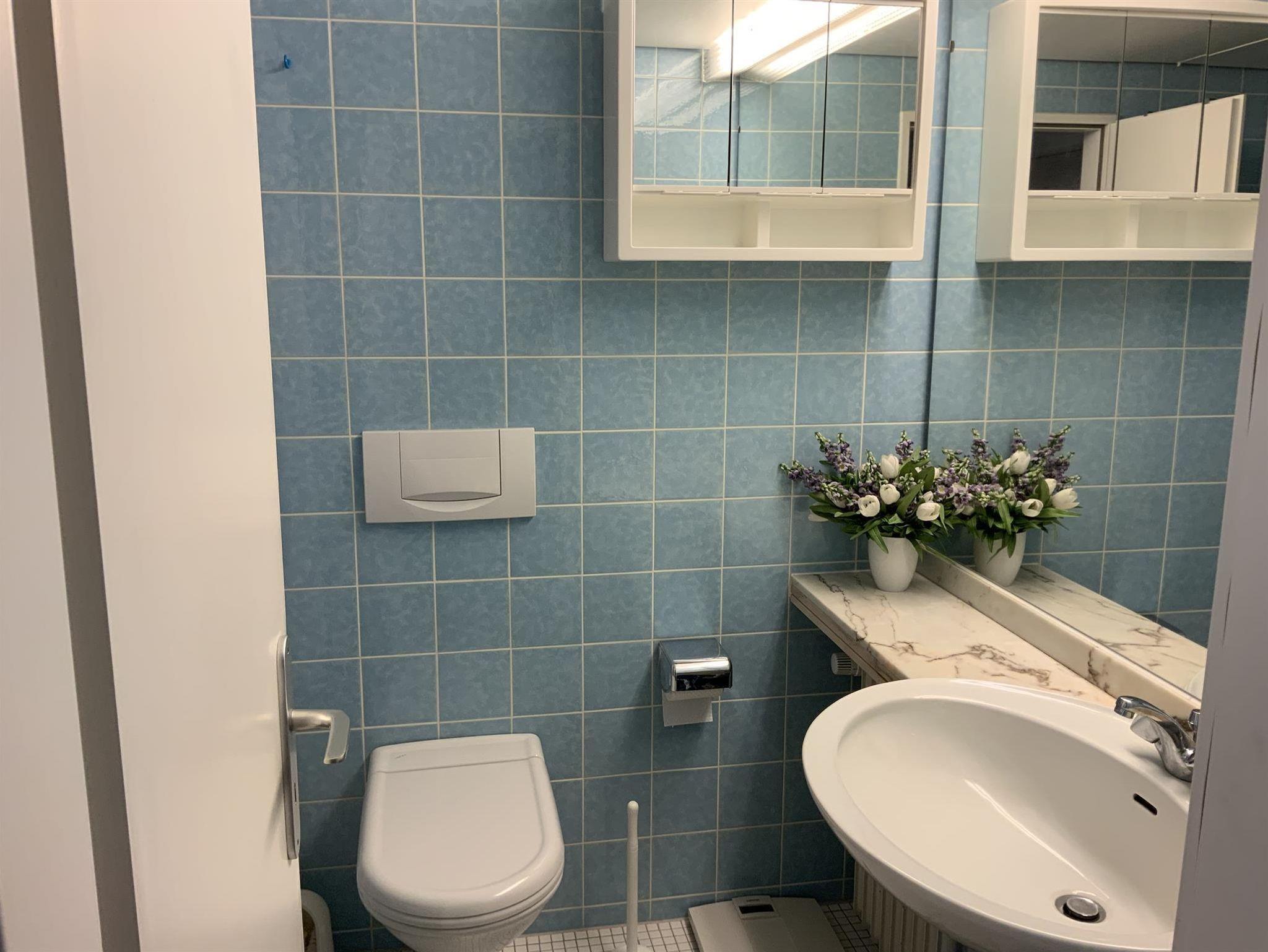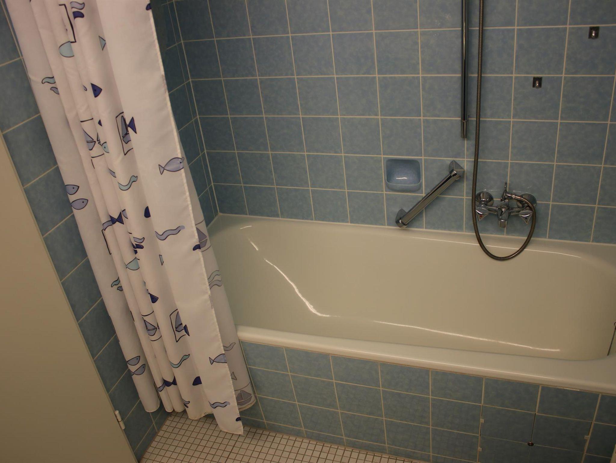 Das Appartement (35 qm) verfügt über eine Diele, Badezimmer mit WC und Badewanne/ Duschvorrichtung und Föhn. Die Küchenzeile hat 2 Cerankochplatten, Toaster, (Filter-) Kaffeemaschine, Wasserkocher, Mikrowelle, Esstisch und Stühle.