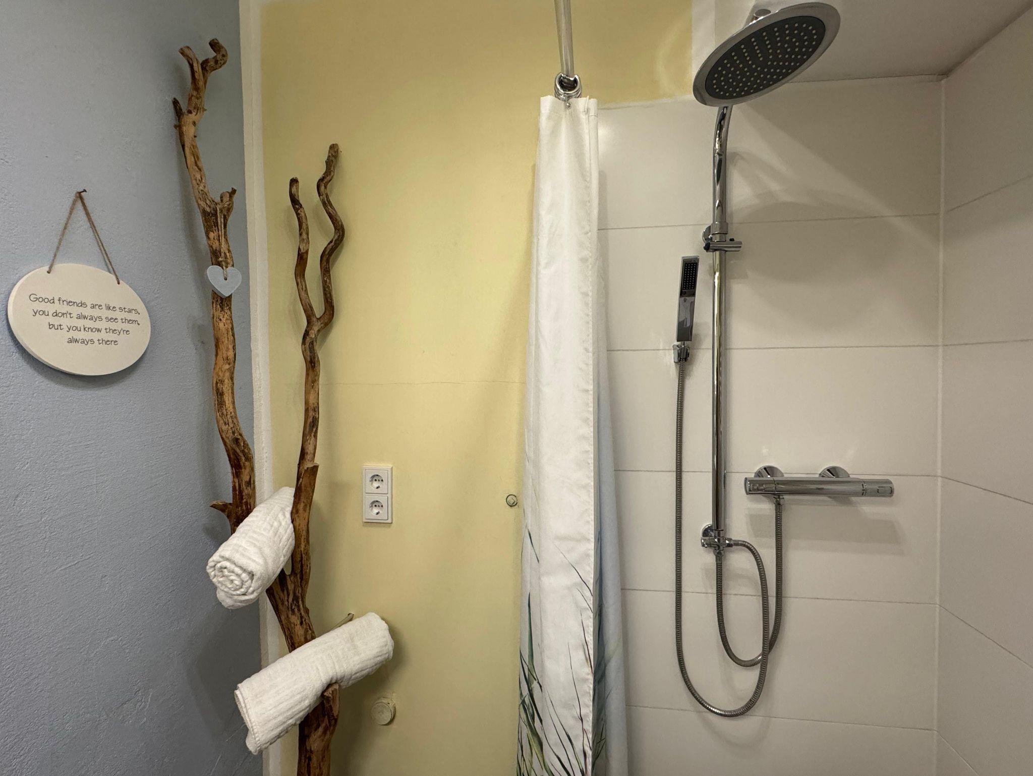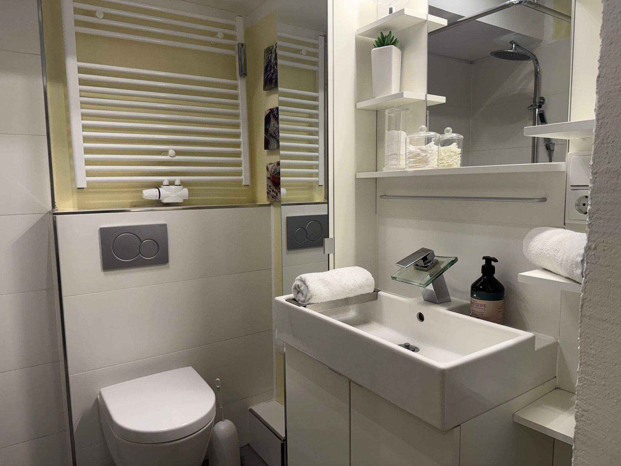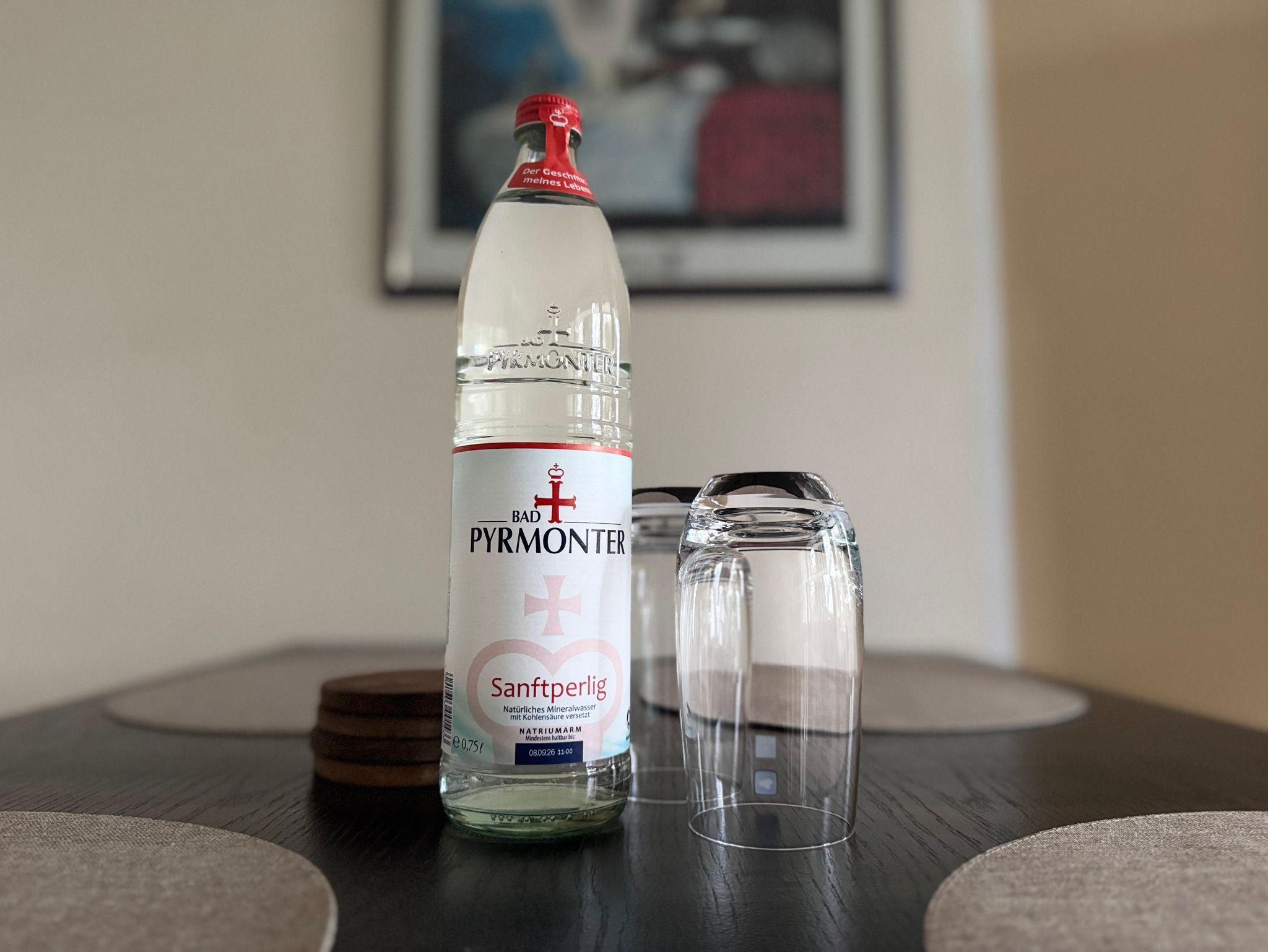 Die moderne Ferienwohnung lädt mit seinem modernen und komfortablen Charme zur Erholung ein. Vergessen Sie in der gemütlichen und mit Liebe zum Detail eingerichteten Wohnung den Alltag oder erholen Sie sich von Ihren Aktivitäten in und um Bad Pyrmont. Ein Komfort-Boxspringbett lädt zum Träumen ein und in dem großen Kleiderschrank und einer Kommode haben Sie viel Platz zum Verstauen Ihrer Garderobe. Zwei große Smart TVs befinden sich im Wohnbereich und im Schlafzimmer. Kostenloses Internet / WLAN rundet das Angebot ab. In der geräumigen Küche befinden sich ein Kühlschrank, Geschirrspüler, Ceranherd mit Backofen, Wasserkocher, Kaffeemaschine, hochwertiges Porzellan, Besteck, Gläser, Töpfe und Pfannen, sowie Grundgewürze, Kaffee und Tee. Im hochmodernen Dusche/WC-Bad befinden sich eine bodenebene Rain-Shower-Dusche mit separater Handbrause, Seife und Shampoo, ein Fön und ein Verbandsset sowie eine moderne Kunstinstallation für Ihre Handtücher. Wir stellen Ihnen Hand- und Badetücher, Bademäntel, Geschirrtücher, sowie sämtliche Hygienepapiere zur Verfügung. Der Wohn- und Essbereich bietet genügend Platz zur Entspannung und besticht durch sein sonnendurchflutetes Flair. Eine bequeme Sitzgruppe und ein antiker Tisch verbinden „Altes mit Modernem“. Geschmackvolle Ölbilder und Accessoires komplettieren den Gesamteindruck und unterstreichen das gemütliche Ambiente. Genießen Sie die Natur mitten in der Stadt und trotzdem im Grünen, auf der ruhigen und überdachten Terrasse auf bequemen Teakholzmöbeln. Sie finden bei uns Bettwäsche, Handtücher, Badetücher, Hygienepapiere, Seife, Shampo, Duschgel und noch vieles mehr vor. Das 62 qm große Apartment zeichnet sich durch seine zentrale Lage innerhalb von Bad Pyrmont aus. Durch die Hanglange bedingt, geht es erst einmal „abwärts“ für Sie, da sich das Apartment im zweiten Hausbereich im Parterre befindet. Sie gelangen über den Fahrstuhl oder eine Treppe hinab. Nun trennen Sie lediglich noch drei gut begehbare Treppenstufen von Ihrem Feriendomizil.