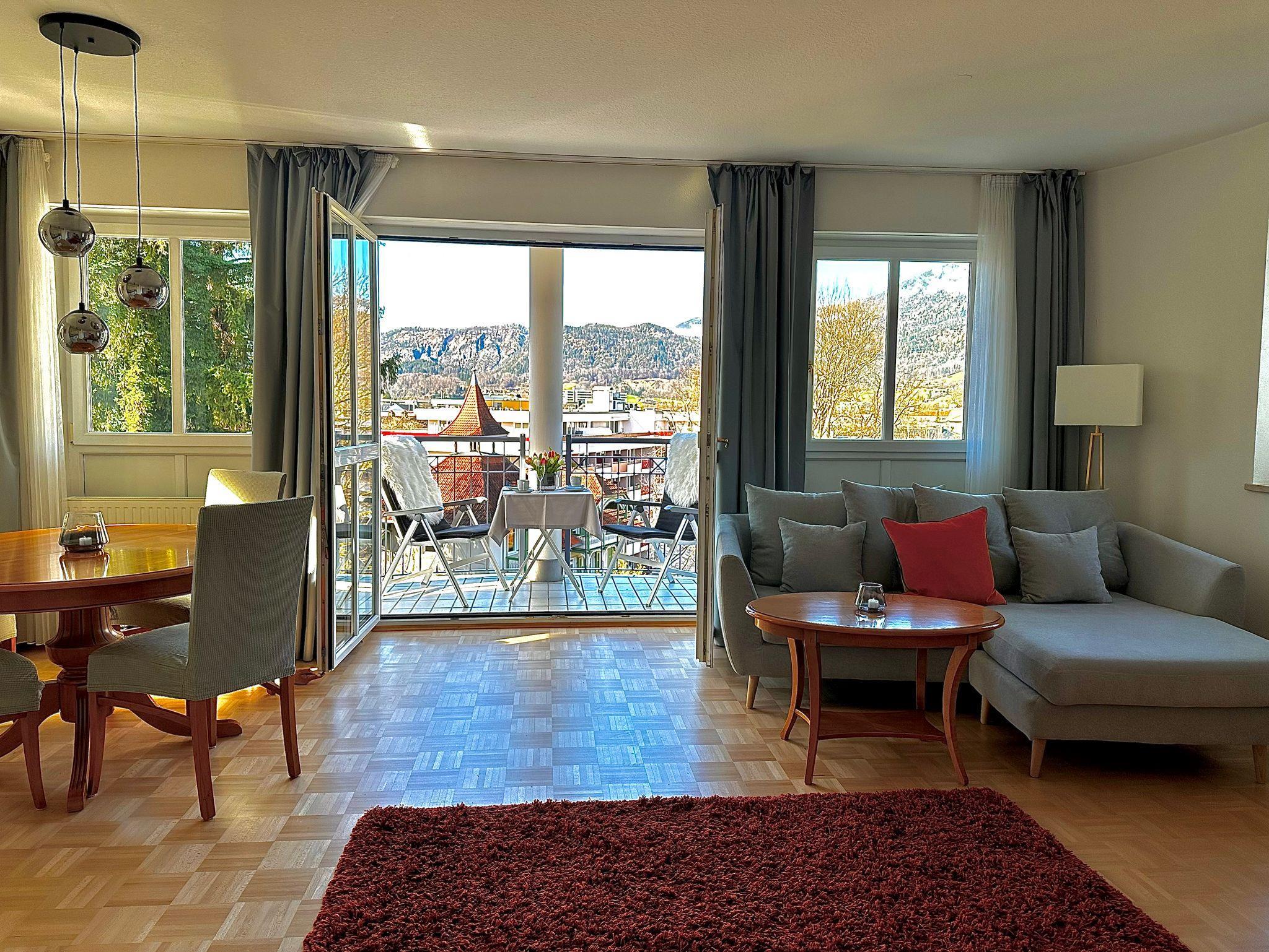 Unser schönes, gemütliches Appartement ist im klassisch- eleganten Stil eingerichtet. Die Wohnung befindet sich im 3. OG und verfügt über ein separates Schlafzimmer mit einem Doppelbett (Boxspringmatratzen - 1,80 x 2,00), ein Wohnzimmer mit Essecke, eine voll ausgestattete Küche mit Geschirrspüler, sowie ein Bad mit Dusche/WC. Auf dem Balkon können Sie das herrliche Bergpanorama der Alpenstadt genießen!
