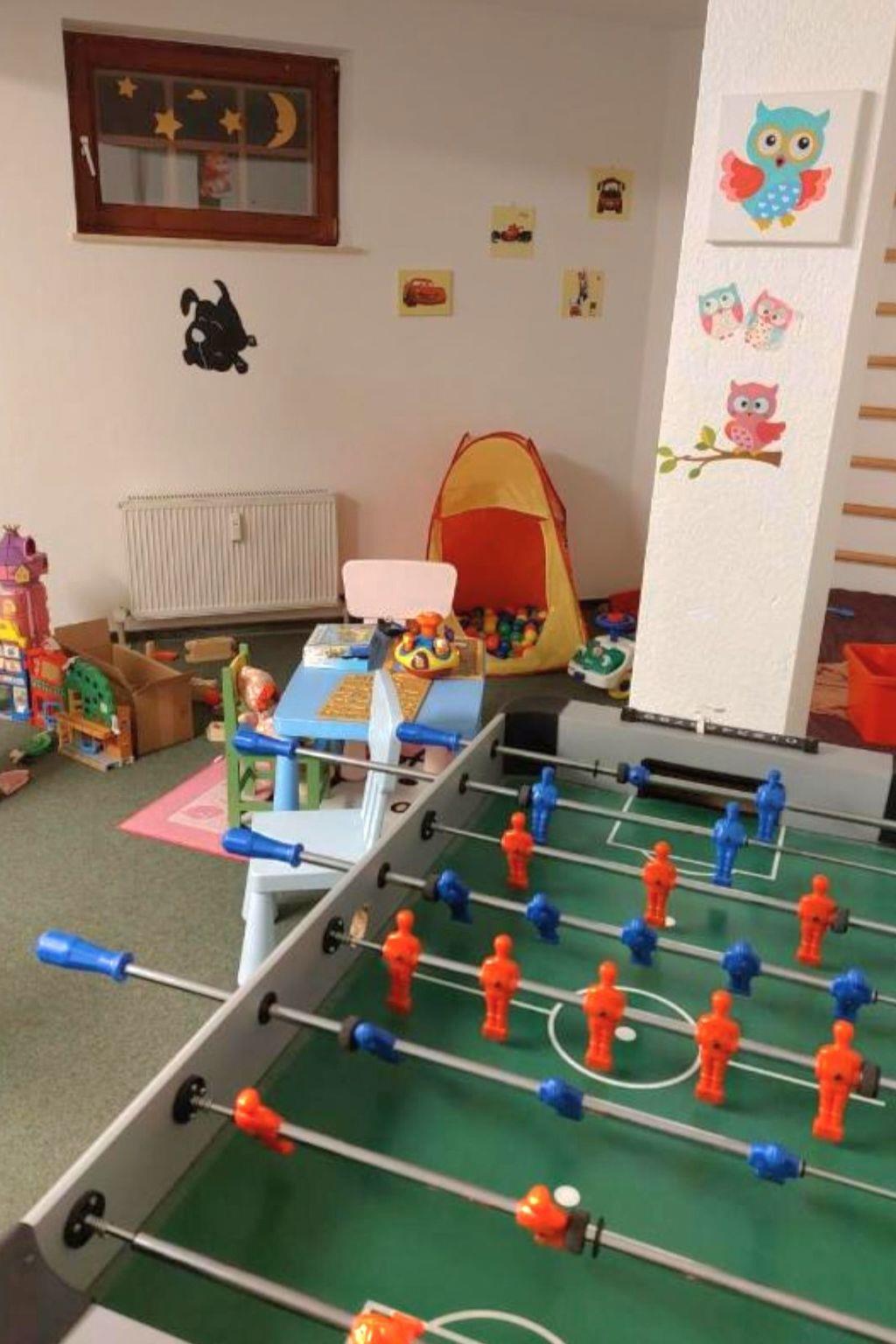 The outdoor area of the flat invites you to linger with a small playground and a fully equipped playroom - including a table tennis table and table football. These amenities offer children and teenagers ideal conditions to let off steam or get creative. Use of the WLAN is of course free of charge, so you can be online at all times.