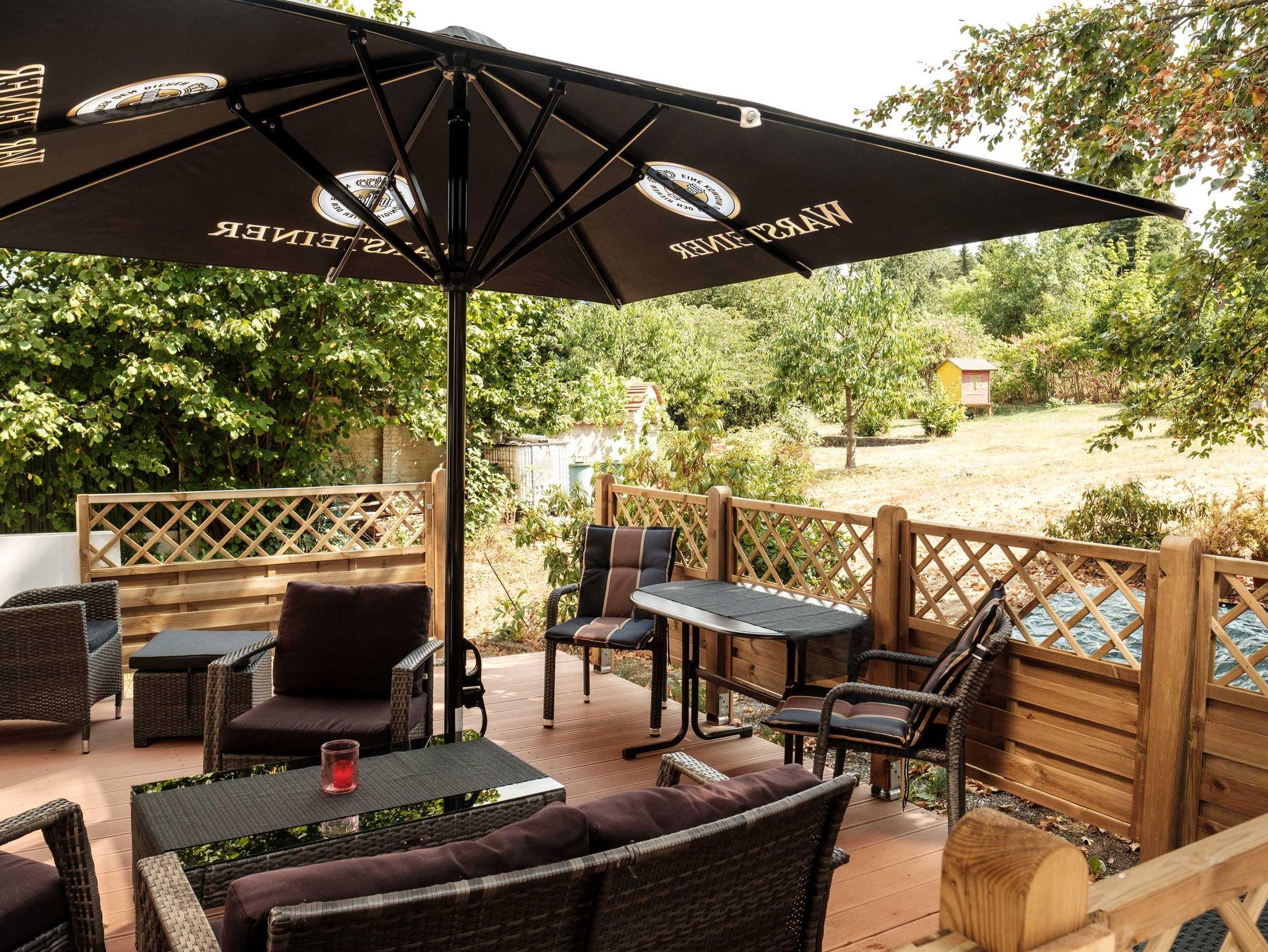 Die Ferienwohnung Auszeit (112 qm) verfügt über eine große, gemütliche Terasse, bietet Platz für bis zu 8 Personen und befindet sich im Ergeschoss.