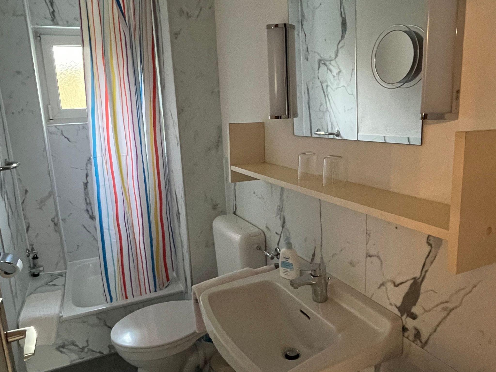 Die Wohnung besteht aus Wohnraum, Schlafraum, Küche und Du/WC. Der Wohnraum beinhaltet eine Sitzgarnitur (ausziehbarer Doppelbettcouch), einen Eßtisch mit vier Stühlen, ein Radio und ein Kabel-TV. Die Küche ist ausgestattet mit Spülmaschine, Geschirr und Besteck für sechs Personen, Toaster, Kaffeemaschine, Mikrowelle und Herd mit Abzugshaube. Bettwäsche und Handtücher sind vorhanden .