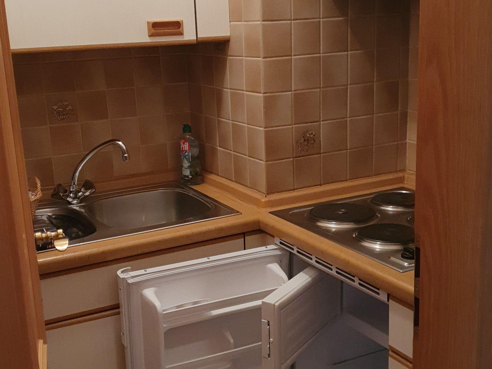 Die Wohnung hat 35 qm Wohnfläche mit Blick in den Vorgarten und zur Straße. Es gibt ein Schlafzimmer mit Doppelbett und eine Doppelschlafcouch im Wohnzimmer. Im Bad gibt es eine Dusche und in der kleinen Küche ist alles zum Kochen vorhanden.