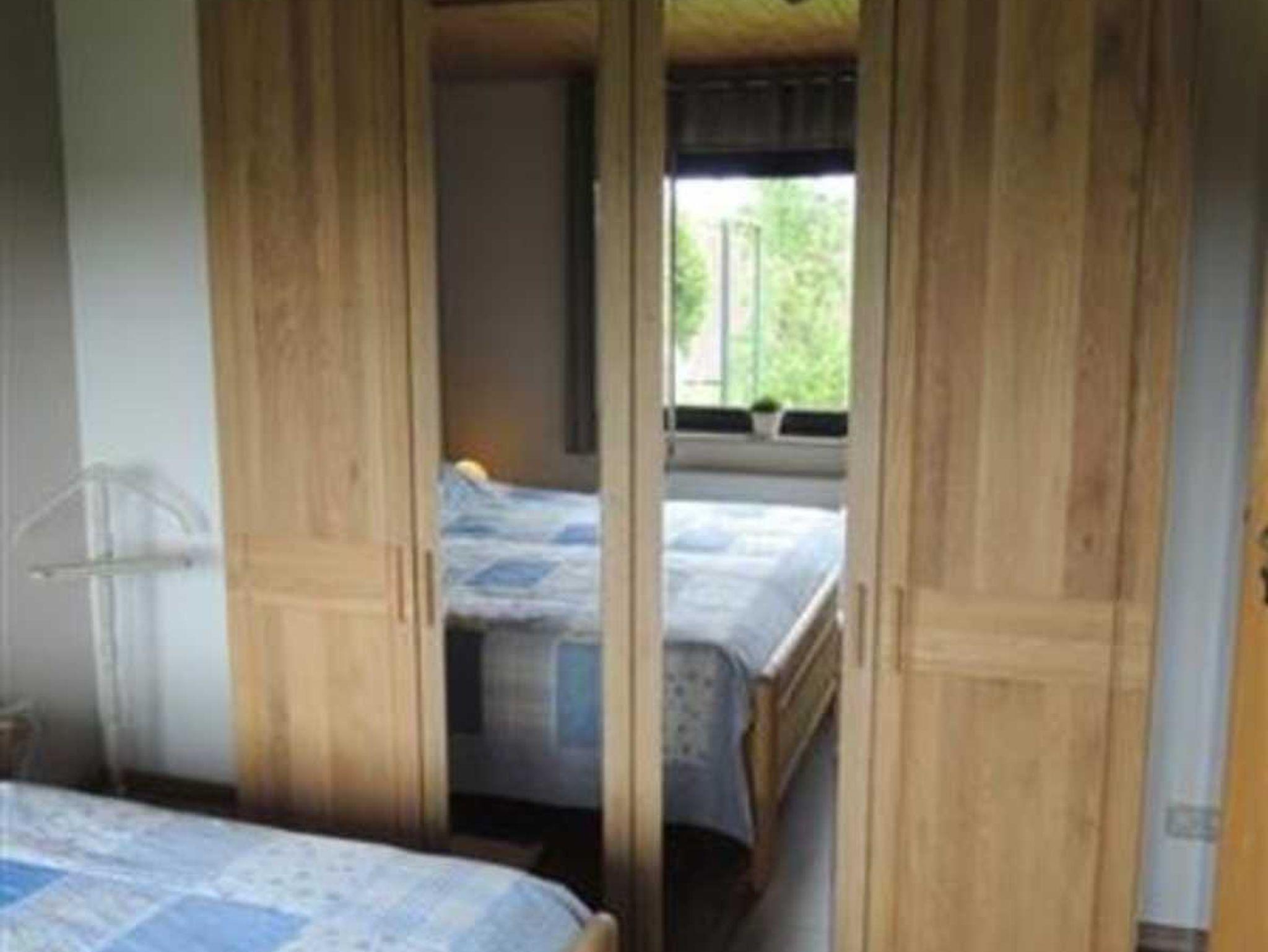 Im Schlafzimmer finden Sie ein Doppelbett, einen geräumigen Spiegelschrank und einen Herrendiener. Bettwäsche ist vorhanden.