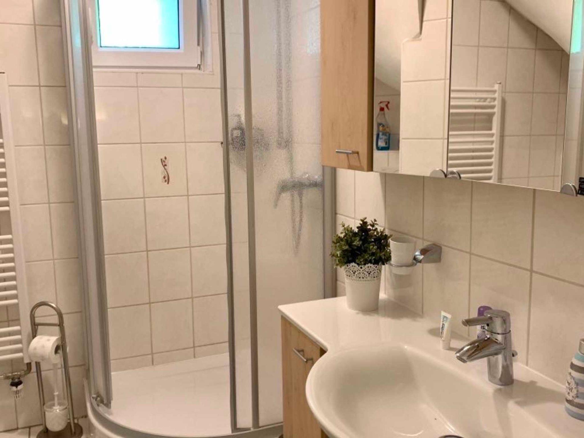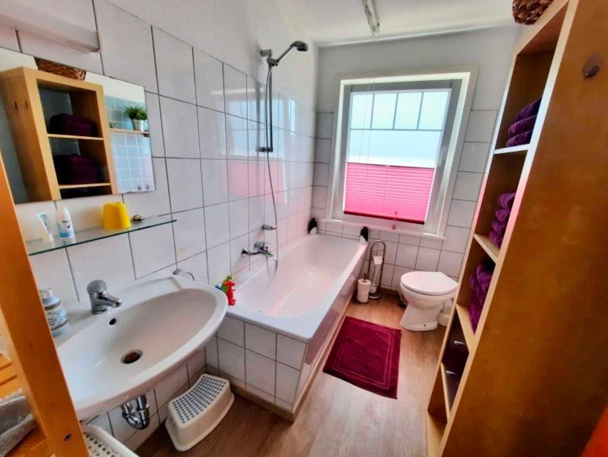 Im Haus befinden sich 2 Badezimmer. In der oberen Etage ist das Badezimmer mit einer Badewanne und einem WC ausgestattet. In der unteren Etage ist das moderne Badezimmer mit einer Dusche und einem WC ausgestattet.