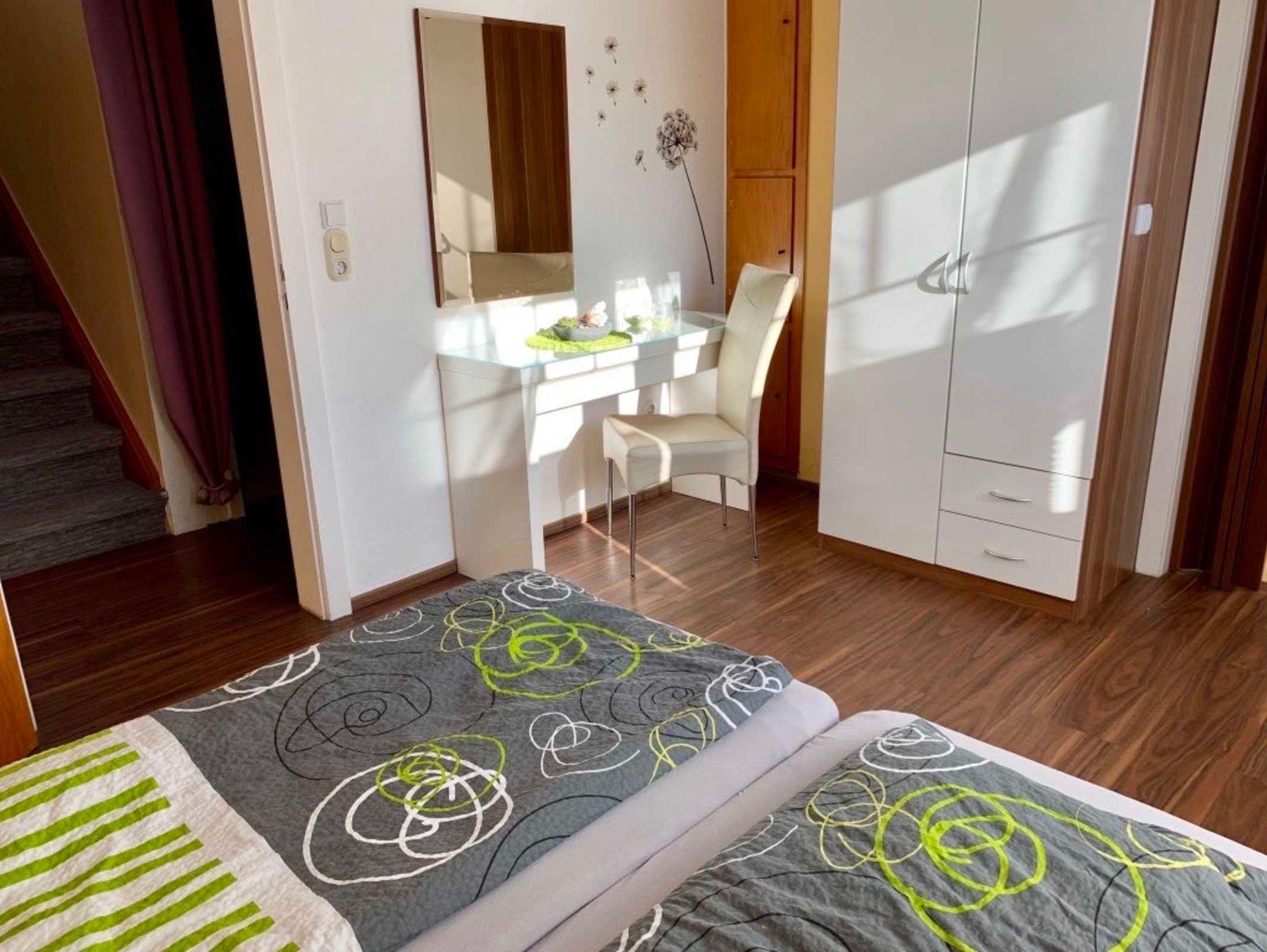 Im Haus befinden sich 4 Schlafzimmer mit insgesamt 10 Schlafplätzen (plus ein zusätzliches Reisekinderbett): Im Schlafzimmer 1 (obere Etage) befinden sich ein großes Doppelbett sowie eine Récamière, die als zusätzliche Schlafgelegenheit genutzt werden kann. Ein Reisekinderbett steht bei Bedarf zur Verfügung. Ein Einbaukleiderschrank sorgt für Ordnung während Ihres Aufenthaltes. Im Kinderzimmer (obere Etage) befinden sich ein Etagenbett sowie ein Einzelbett. In diesem Zimmer ist ein zusätzlicher kleiner Flachbild-TV vorhanden. Ein Einbaukleiderschrank sorgt für Ordnung.