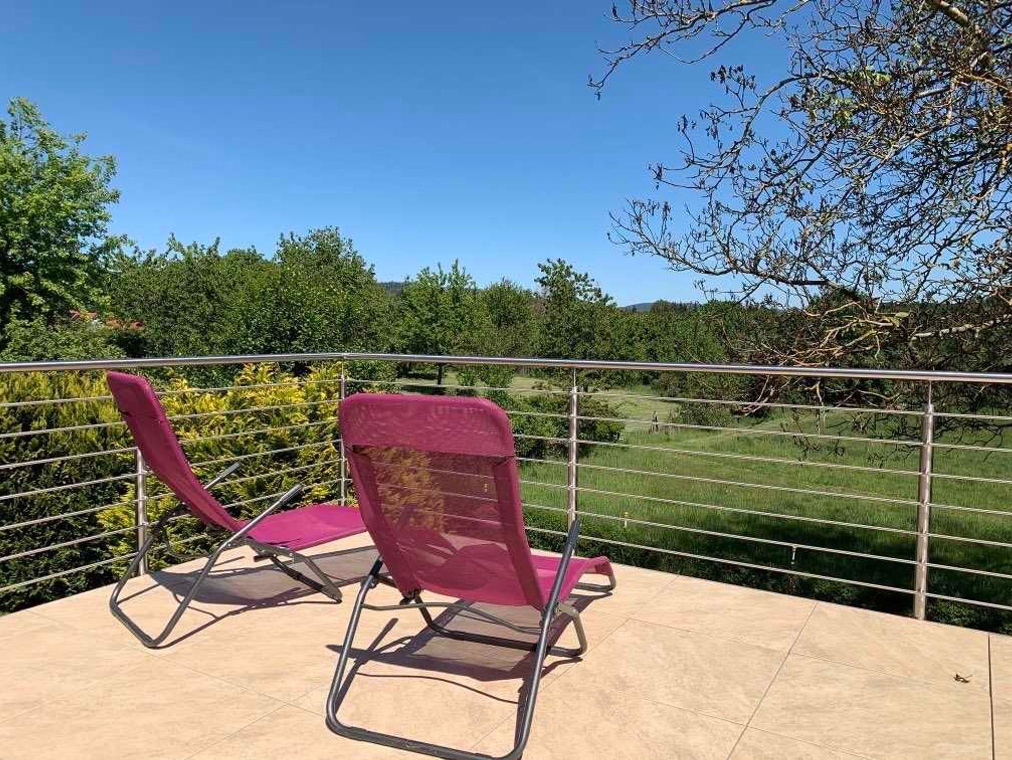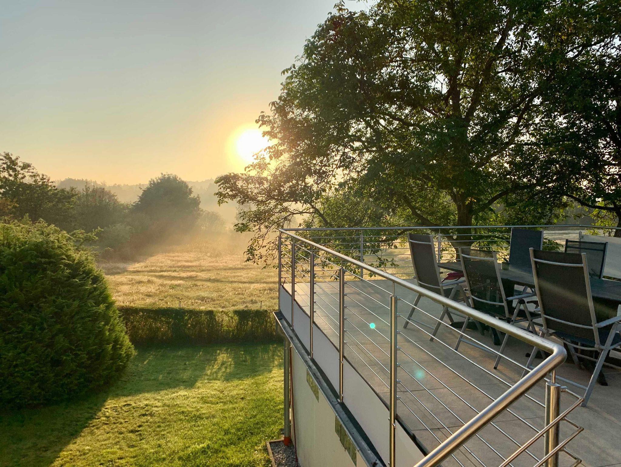 Im oberen Bereich befindet sich neben einem großen Wohn- und Esszimmer, eine separate Küche, 1 Badezimmer (Wanne) mit WC und 2 Schlafzimmer. Angeschlossen an das Wohn-/ Esszimmer ist ein über 50 m² großer Balkon mit einem Zugang in den Garten und herrlichem Blick auf Wiesen und Wälder. Im unteren Bereich befindet sich ein weiteres neues Badezimmer (Dusche) mit WC, 2 Schlafzimmer und ein zusätzlicher Eingangsbereich. Insgesamt stehen 10 Schlafplätze sowie ein Kinderbettchen zur Verfügung.