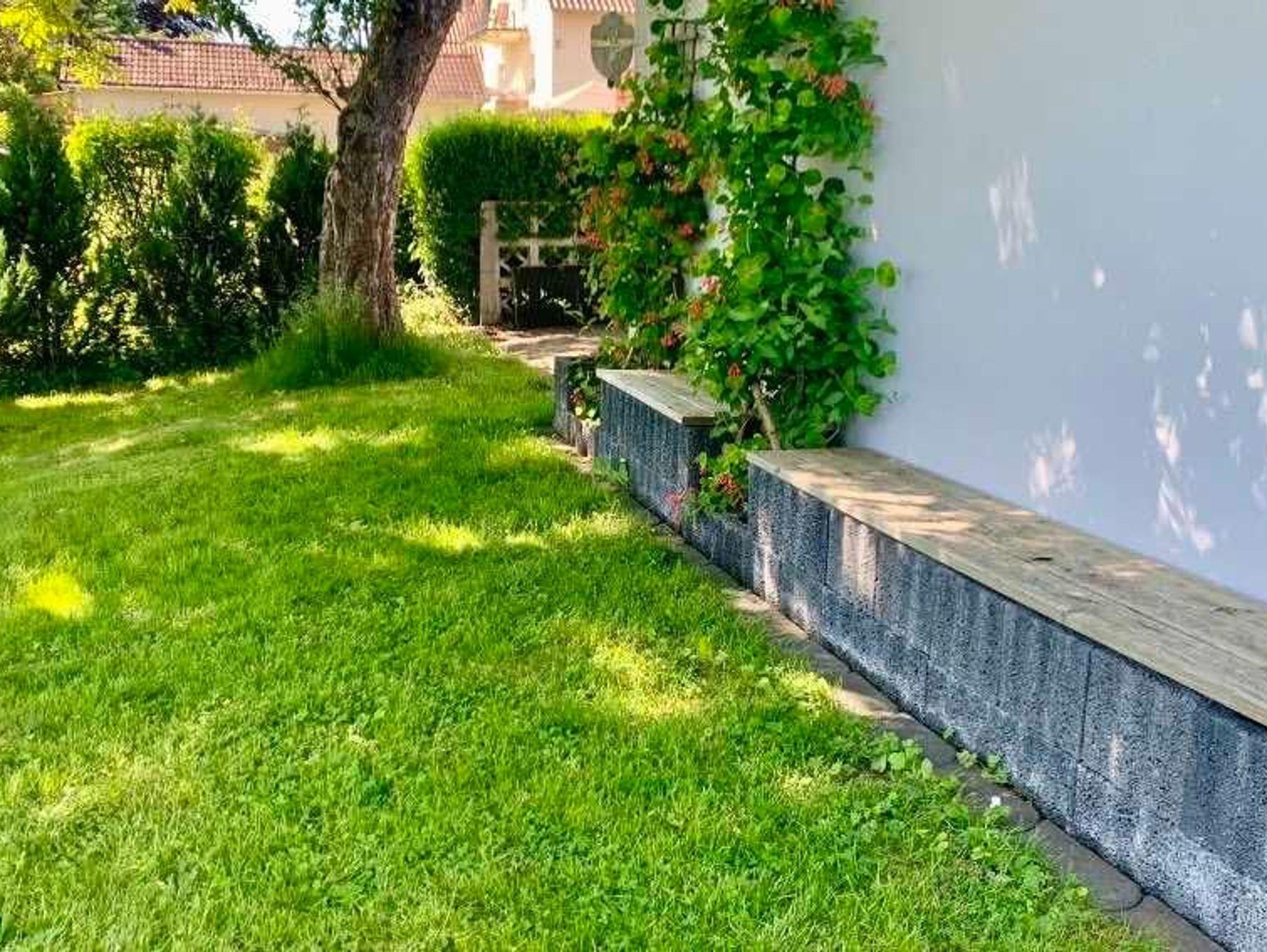 Um das Ferienhaus befindet sich ein großer gepflegter Garten mit einer Schaukel.