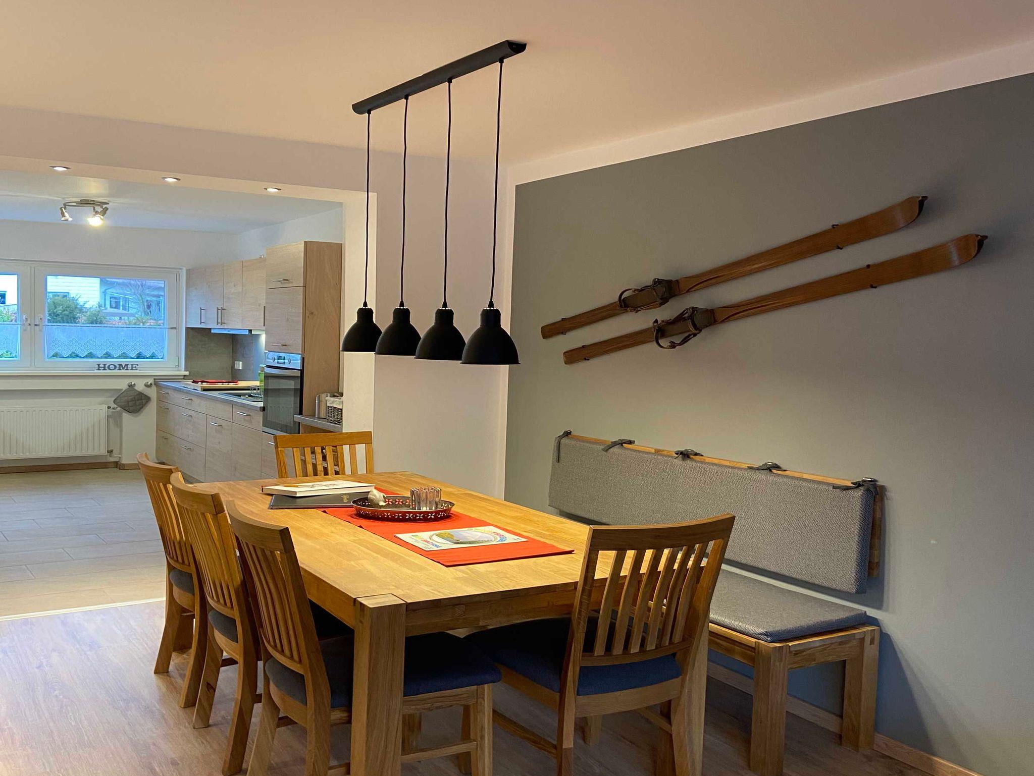 Ihre Kleine Auszeit erwartet Sie auf einer Fläche von ca. 130 qm mit bis zu 3 Schlafzimmern mit Doppelbett 180x200, alle ausgestattet mit Flachbildfernseher, Möbeltresor und USB Anschluss zur Ladung Ihrer Mobilgeräte (am Bett). Im Kinder-Schlafzimmer befindet sich ein Etagenbett 90x200. Für unsere kleinen Gäste sind Kindergeschirr, Hochstuhl, ein Reisebett, Tritthocker und WC Sitz bei Bedarf vorhanden. Handtücher und Bettwäsche sind vorhanden und im Preis enthalten. Das geräumige Wohnzimmer mit Flachbildfernseher, Internetradio (Bluetooth Verbindung mgl.) und Essbereich für 8 Personen bietet Ihnen genügend Platz für gemütliche Spiele- oder Fernsehabende. Die komplett eingerichtete moderne Küche ist mit Geschirrspüler, Ceranfeld mit Dunstabzugshaube, Backofen, Mikrowelle, Toaster, Wasserkocher und Kaffeemaschine ausgestattet. Eine erste Grundausstattung aus Küchenrolle, Geschirrhandtücher, Spülmittel, erste Geschirrspültabs und Toilettenpapier sind für Sie vorhanden. Weiter gehören zum Ferienhaus zwei Duschbäder mit bodengleicher Dusche 120x80 und WC, eine separate Toilette im Erdgeschoß, Waschmaschine und Trockner sowie die Möglichkeit der Mitnutzung einer Garage für Fahrräder, Motorrad, Ski, Schlitten o.ä.. Das Einstellen eines PKW ist nicht möglich. Die Kleine Auszeit verfügt über 2 Balkone und einen gepflasterten Innenhof mit Freisitz. Bei dem Ferienhaus handelt es sich um ein Nichtraucherhaus. Tiere sind nicht erlaubt.
