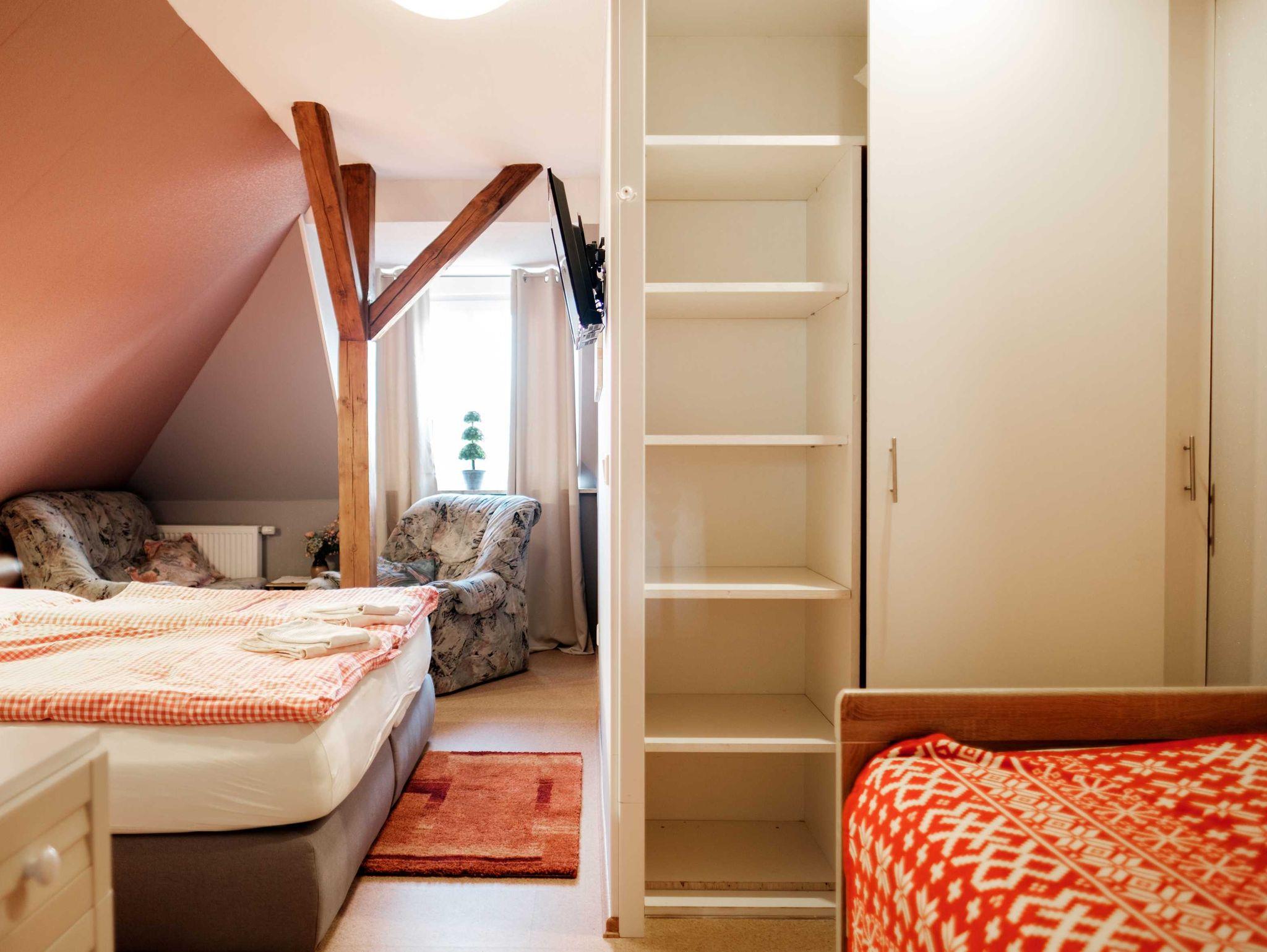 Die Wohnung ist geeignet für bis zu 8 Personen. Sie umfaßt: 1 Schlafzimmer, 1 Wohn- und Schlafzimmer, 1 kleines Wohn-/Schlafzimmer, 1 Badezimmer mit Regendusche, 1 Badezimmer mit Badewanne und Doppelwaschbecken, 1 Wohnzimmer mit Essecke, Küche- ist geöffnet zum Essbereich- mit Geschirrspüler. Diese Wohnung befindet sich direkt gegenüber des Erlebnisbades Salztal-Paradies.