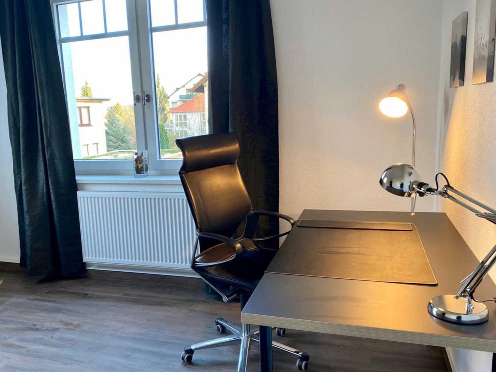 • Arbeitszimmer mit einem Schreibtisch und Sitzgelegenheit