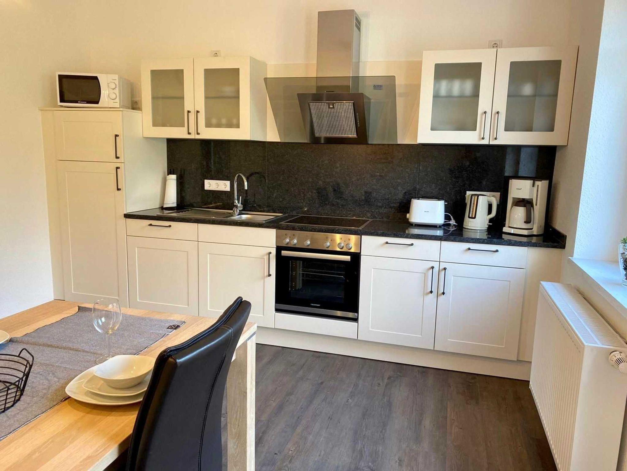 In einer kernsanierten 1930er Villa und nur wenige Minuten vom Ortskern Bad Sachsas entfernt, begrüßen Sie zwei exklusiv eingerichtete, großzügige Ferienwohnungen. Die beiden 110m² bzw. 106m² großen Appartements sind für max. 4 bzw. 6 Personen geeignet und verfügen über zwei bzw. drei Schlafzimmer. Die Appartements sind ausgestattet mit Wohn- & Schlafzimmer sowie einer vollwertigen Einbauküche (Backofen, Gefriermöglichkeit, Kühlschrank, Mikrowelle, Spülmaschine). Weiterhin gibt es jeweils ein Badezimmer mit ebenerdiger Dusche.