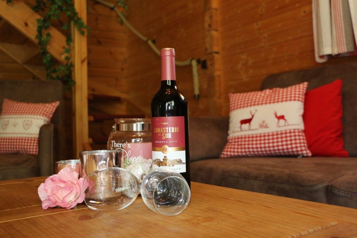 Das Blockhaus ist komplett mit einem ca 80 cm hohen Zaun eingezäunt. Die nach Süden ausgerichtete Terrasse eignet sich hervorragend zum entspannen, sonnenbaden oder grillen. Gartenmöbel stehen kostenlos zur Verfügung.