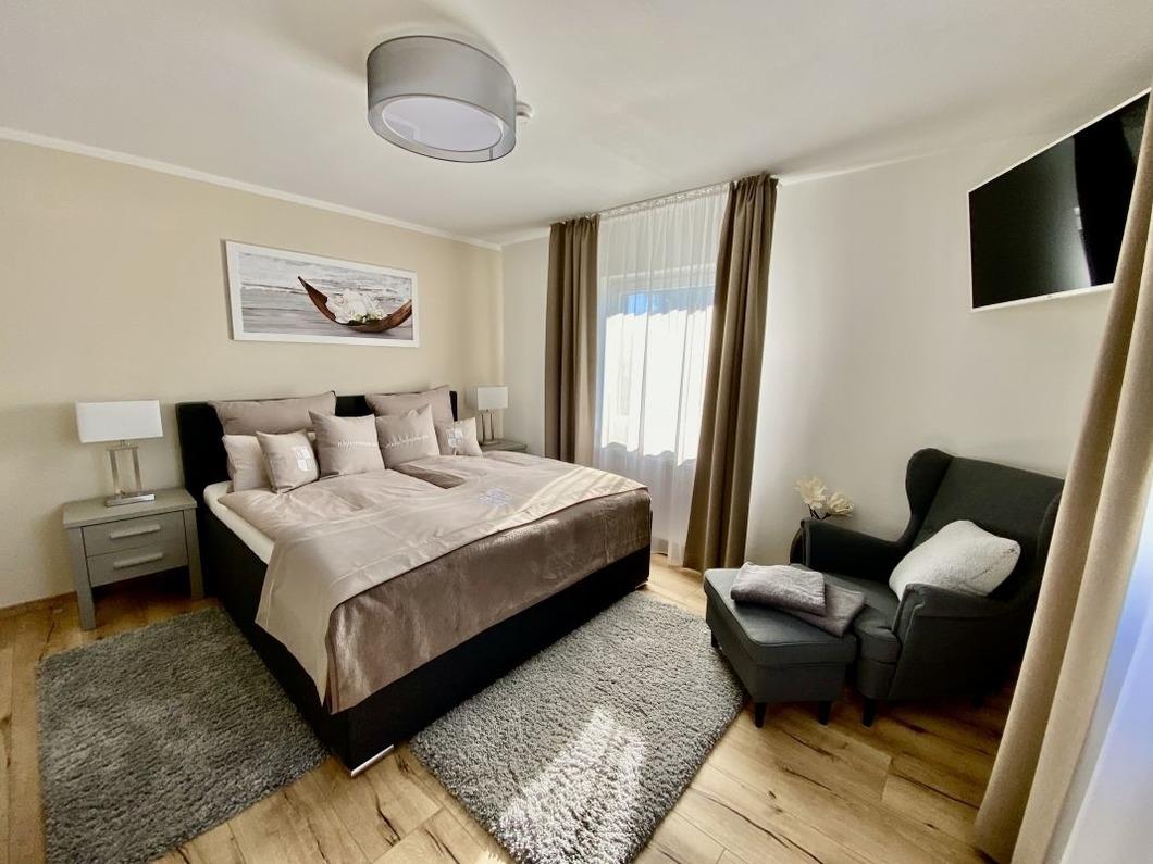 Auch die Schlafzimmer sind liebevoll, luxuriös und detailgetreu eingerichtet, die weiche und kuschelige Bettwäsche in Übergröße, das gemütliche Ambiente und die tolle Beleuchtung lässt sie erholsam schlafen. So stehen Ihnen hier noch alle notwendigen Dinge des Alltags - die auch im Urlaub nicht fehlen dürfen - zur Verfügung. Ob Sie ein Hemd aufbügeln oder kurz etwas reinigen möchten, es ist alles da, was man braucht.