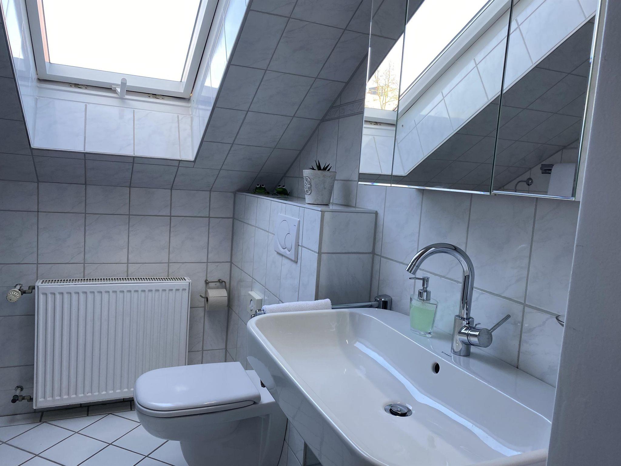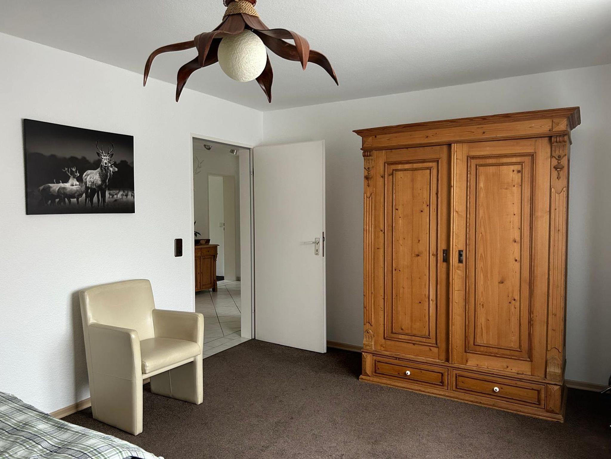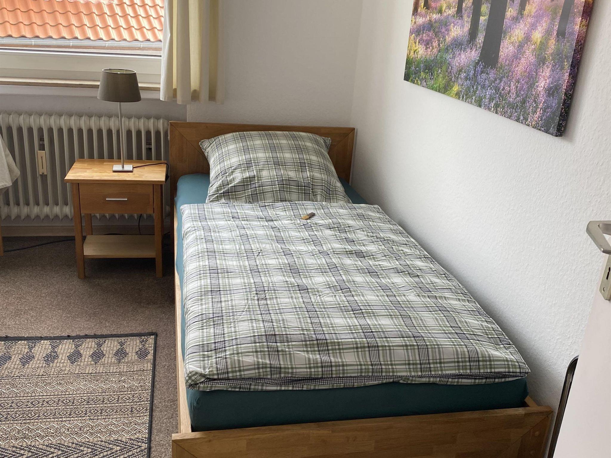 Die Wohnung verfügt über ein geräumiges Wohnzimmer mit Essbereich und einer gemütlichen Fernsehecke. Schlafzimmer 1 ist mit einem Doppelbett (180 cm) ausgestattet, Schlafzimmer 2 mit einem 140 cm breiten Bett und Schlafzimmer 3 mit einem 90 cm breiten Bett. Die Küche ist voll ausgestattet mit Kaffeemaschine (Filter), Toaster, Wasserkocher, Mikrowelle, Geschirrspüler, Kühlschrank, Gefrierschrank, Herd mit Cerankochfeld, Backofen, Geschirr, Besteck, Töpfen und Geschirrtüchern. Das Bad mit ebenerdiger Dusche und der geräumige Flur runden die Austattung der Wohnung ab. Öffentliche Parkmöglichkeit sind direkt vor der Tür, die Stadtbus-Haltestellt befindet sich 50 m entfernt. Die Wohnung befindet sich im ersten Obergeschoss.