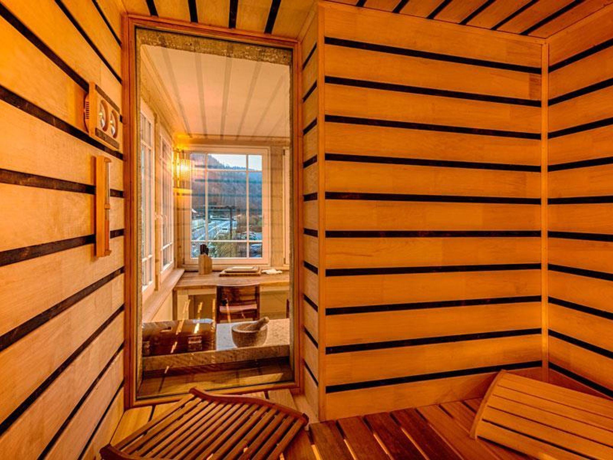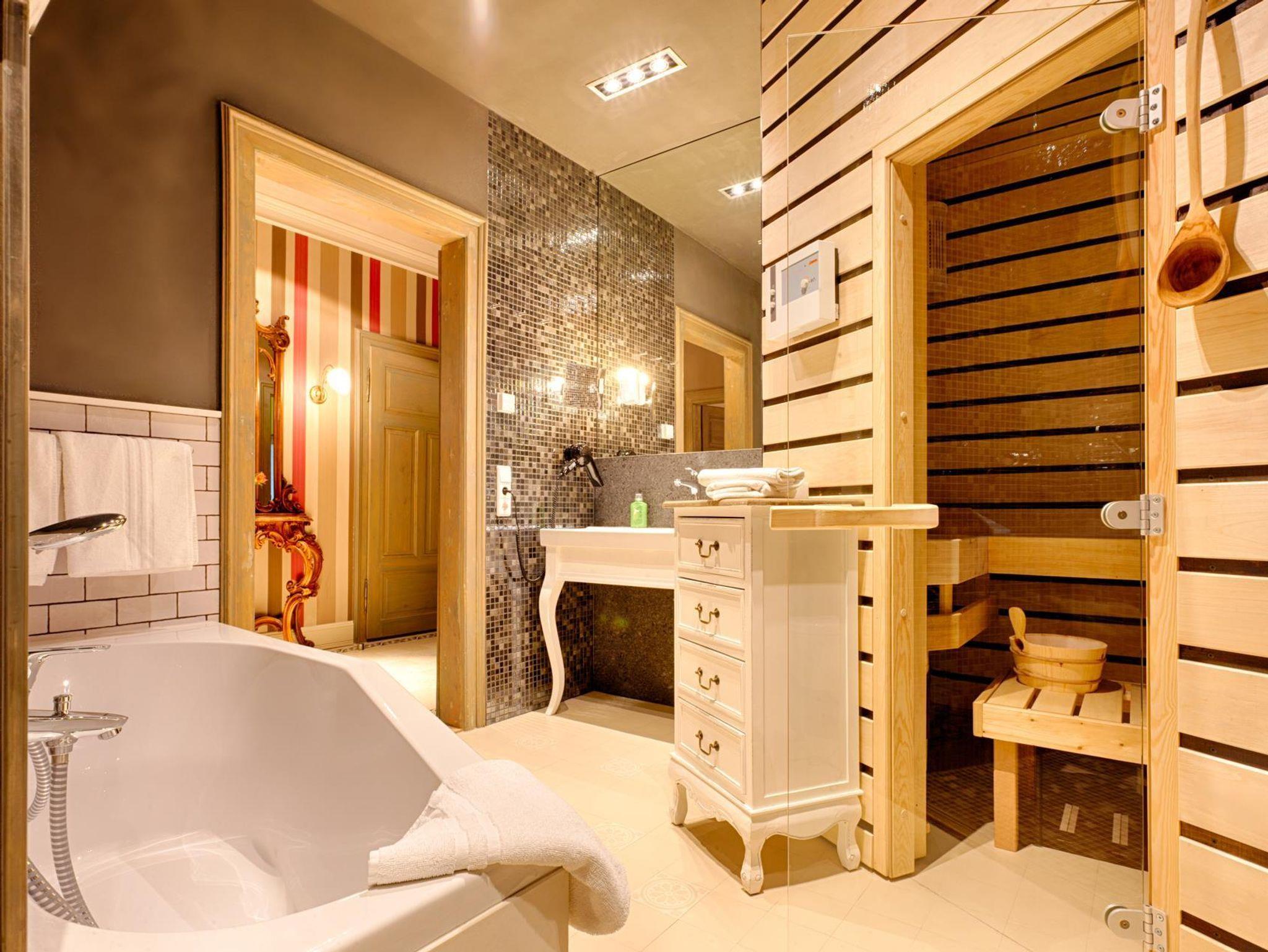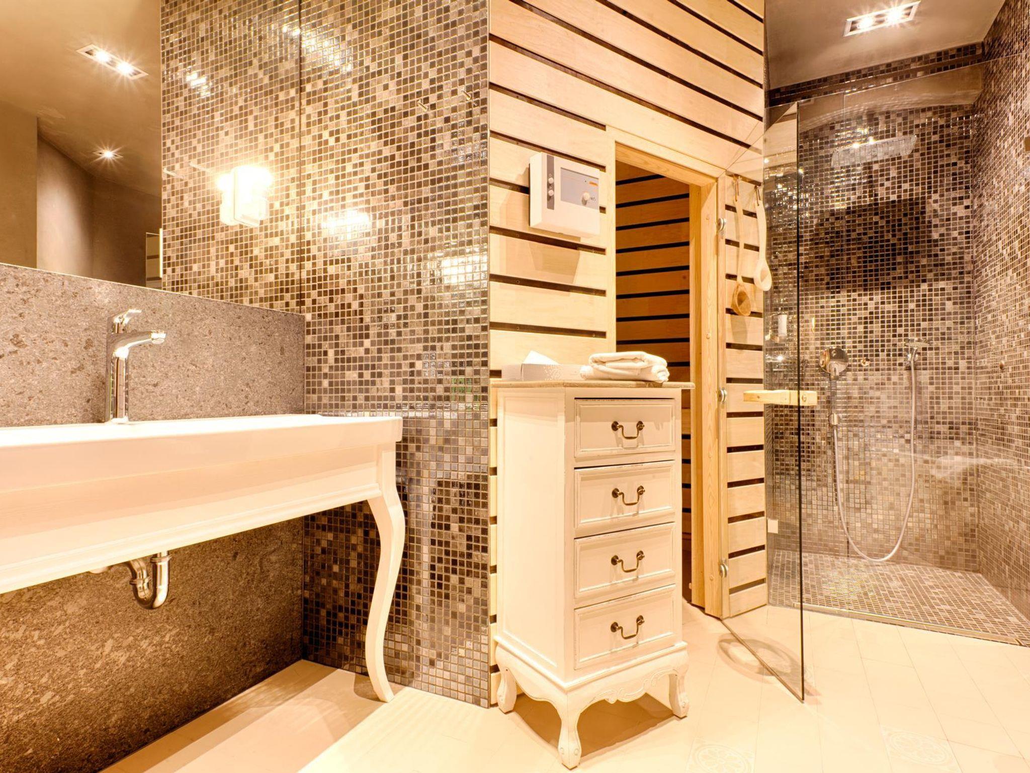 Besonders hervorzuheben ist das Badezimmer, welches mit einer eigenen Finnischen Sauna aufwartet, sowie über eine Dusche und eine Badewanne verfügt. In einem separaten Raum finden Sie das WC und eine Waschmaschine.