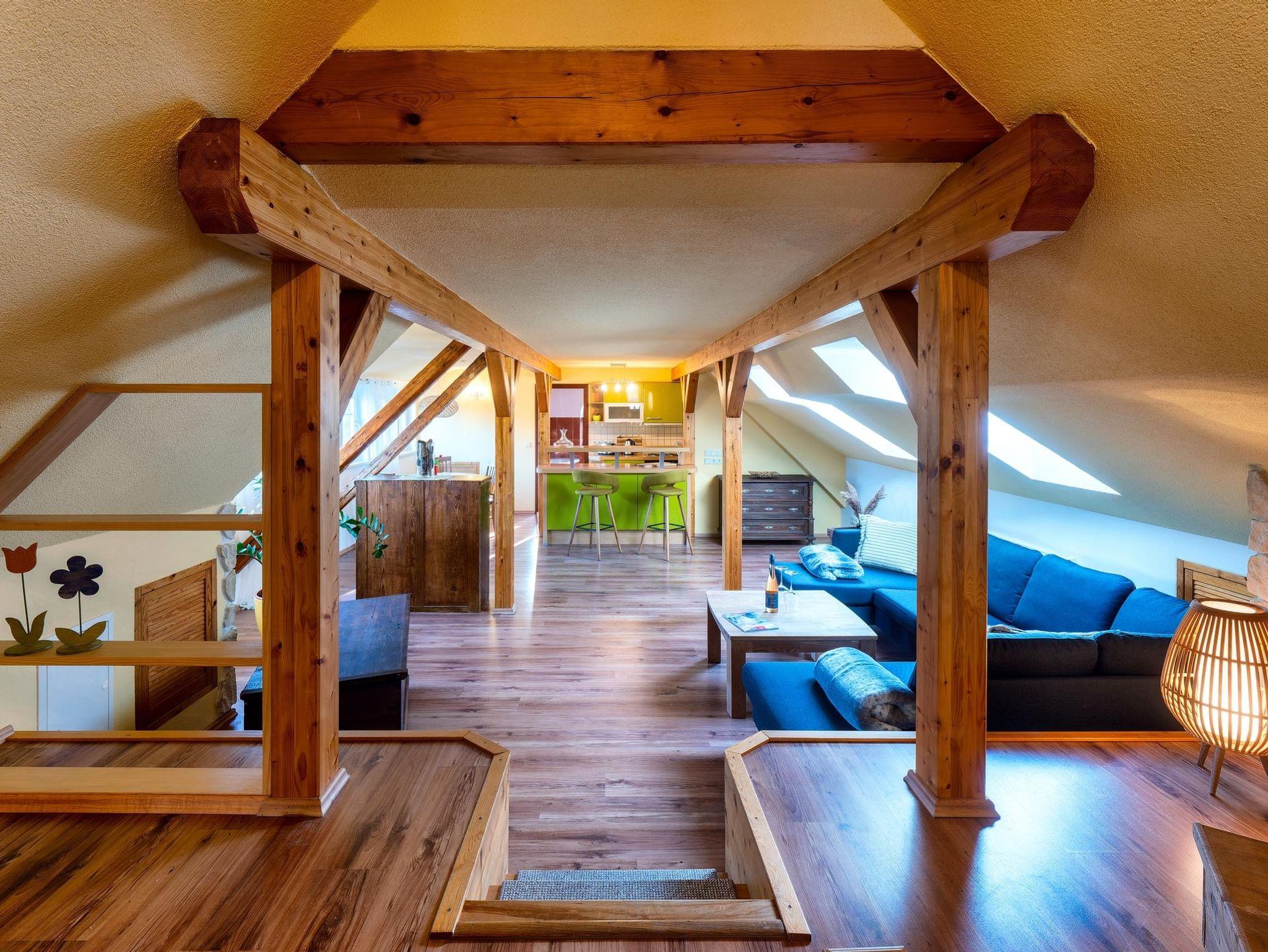 Herzlich willkommen in unserer gemütlichen Ferienwohnung Dachboden für zwei Personen, ideal mit eigenem Eingang und einer charmanten Sitzecke am Weinberg. Hier können Sie entspannte Tage genießen und sich wie zu Hause fühlen.