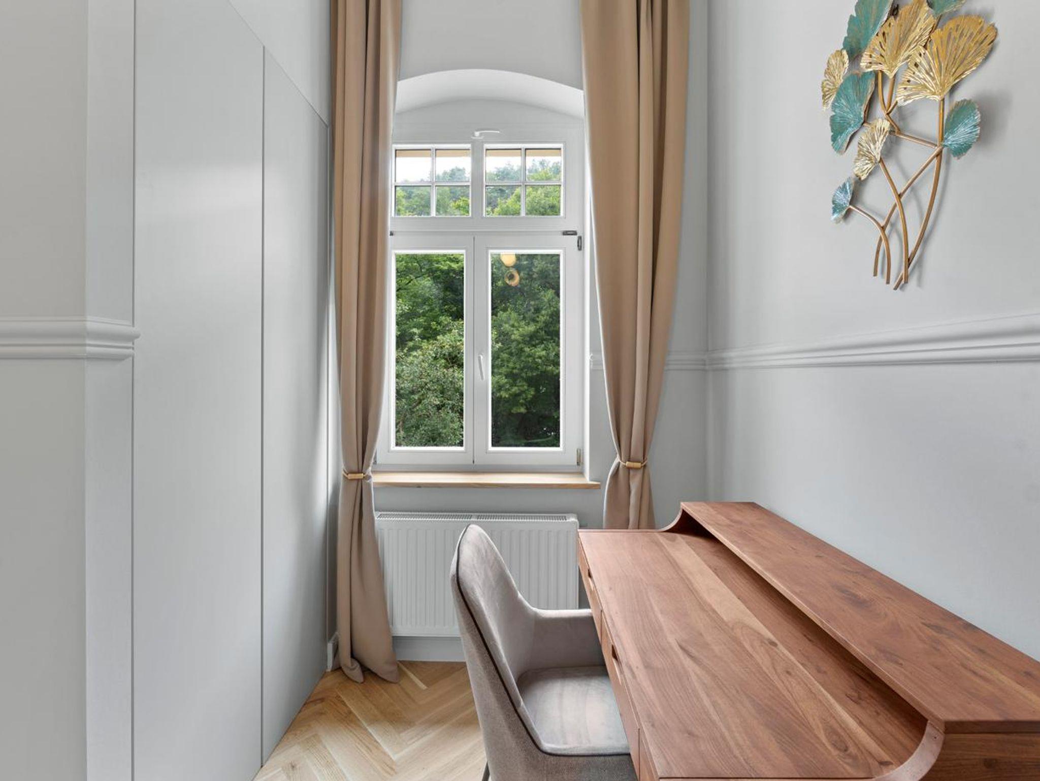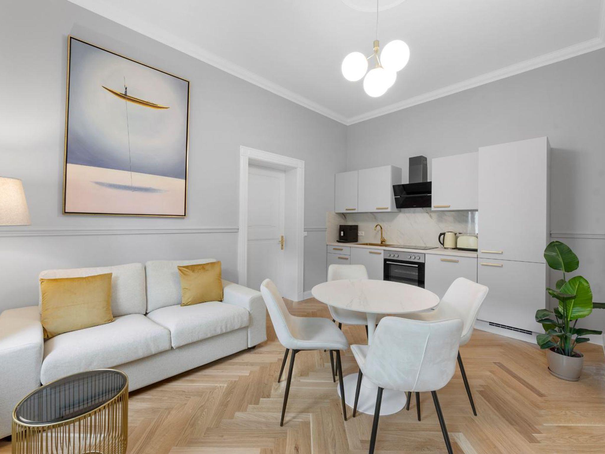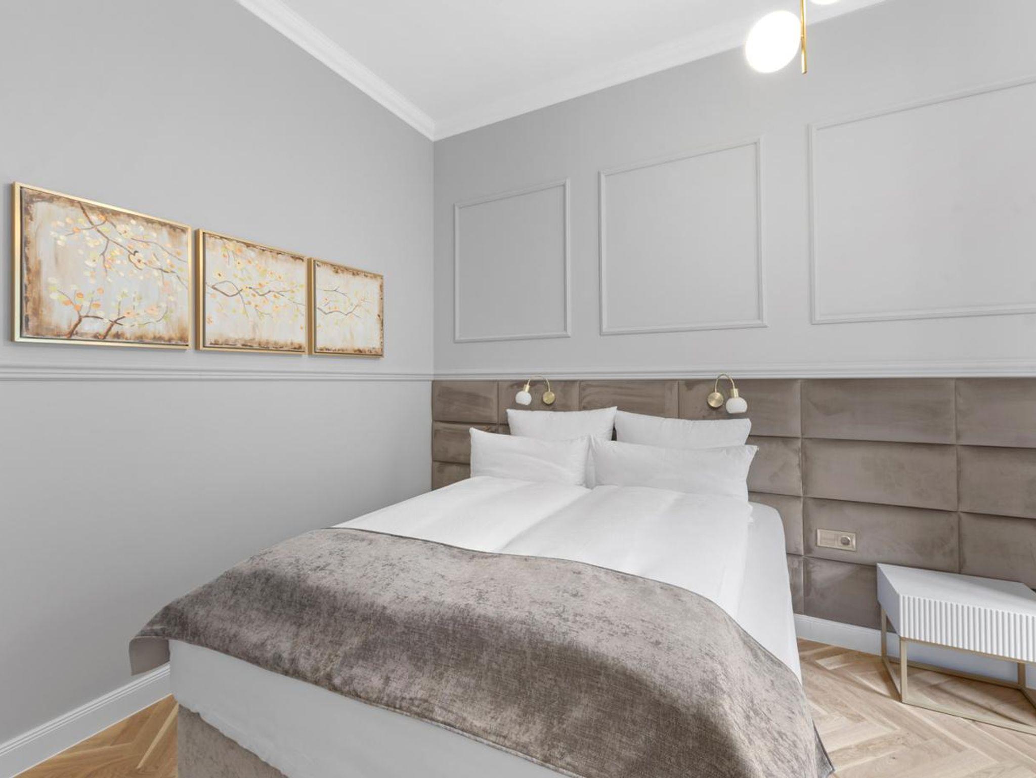 Genießen Sie hochwertige Boxspringbetten, luxuriöse Bettwäsche, elegantes Fischgrätenparkett und eine private Sauna. Entspannen Sie auf Ihrer Terrasse. Historischer Charme trifft modernen Luxus - Ihr neues Zuhause fernab von Zuhause.