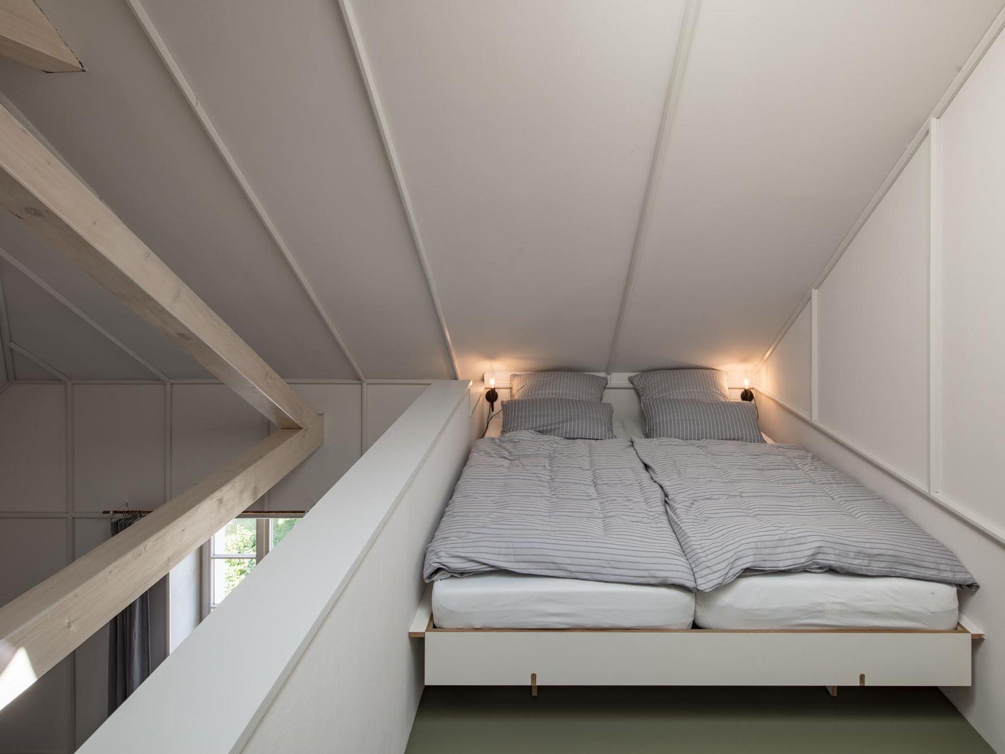 Das besondere Raumgefühl des offenen Mansardengeschosses erleben Sie in unserem Vier-Personen-Appartement unterm Dach. Sichtbare Holzbalken und schräge Dachflächen schaffen Atmosphäre und Behaglichkeit. Der Wohnbereich ist durch einen Treppenaufgang mit der Schlafgalerie verbunden, auf der zwei Personen entspannt und geborgen schlafen. Die untere Ebene bietet alles, was eine Familie zum komfortablen Aufenthalt benötigt: eine vollausgestattete Küchenzeile, einen Essplatz mit Talblick, eine gemütliche Sitzecke und ein Badezimmer mit Bidet. Der angrenzende Giebel beherbergt ein separates Schlafzimmer mit eigenem Bad. Durch die großzügigen Gaubenfenster können Sie morgens die ersten Sonnenstrahlen genießen – das Glasoberlicht über der Schlafgalerie ermöglicht nachts den Blick in die Sterne.