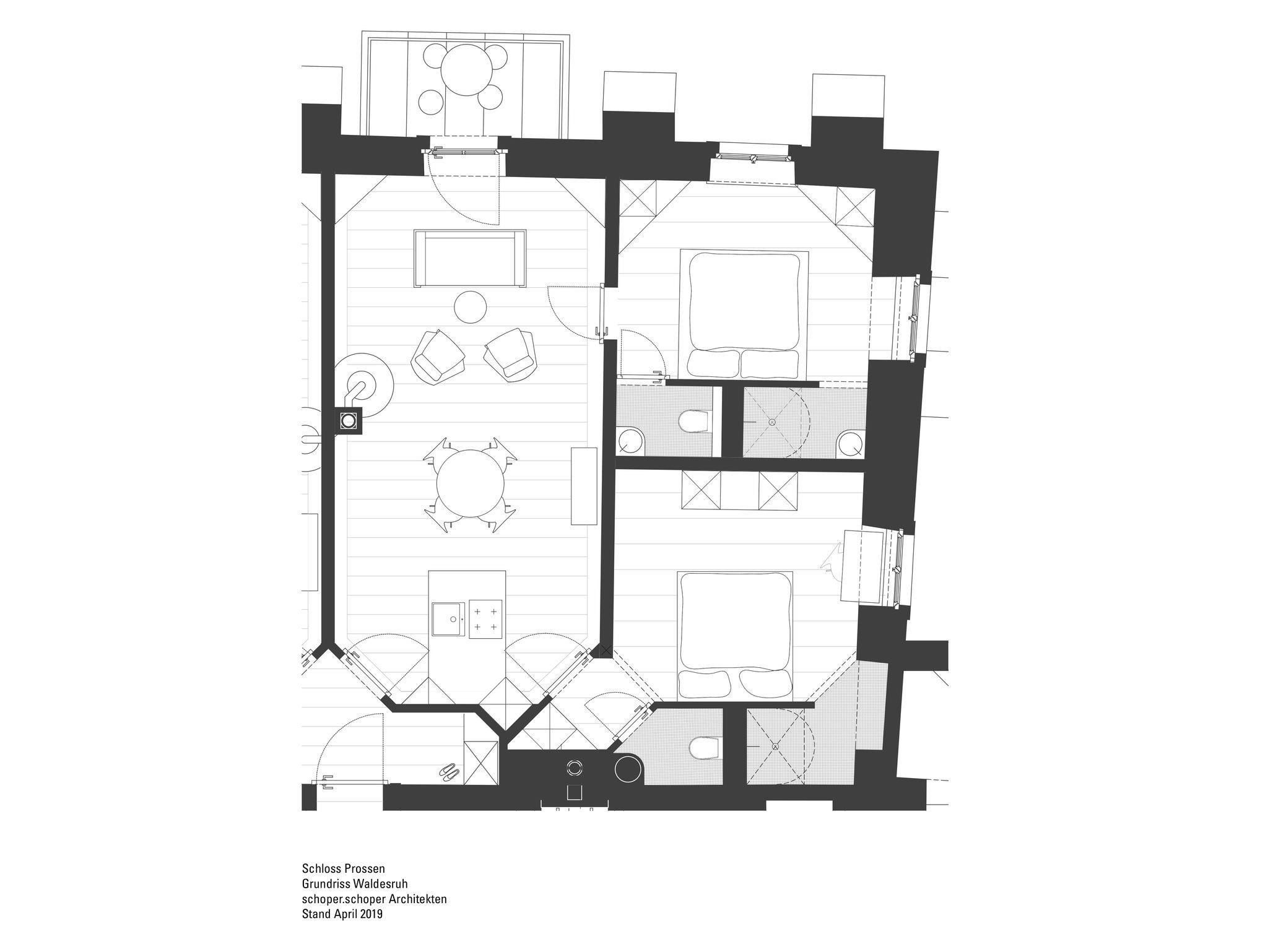 Schloss Prossen, Apartment Waldesruh, 2 Schlafräume