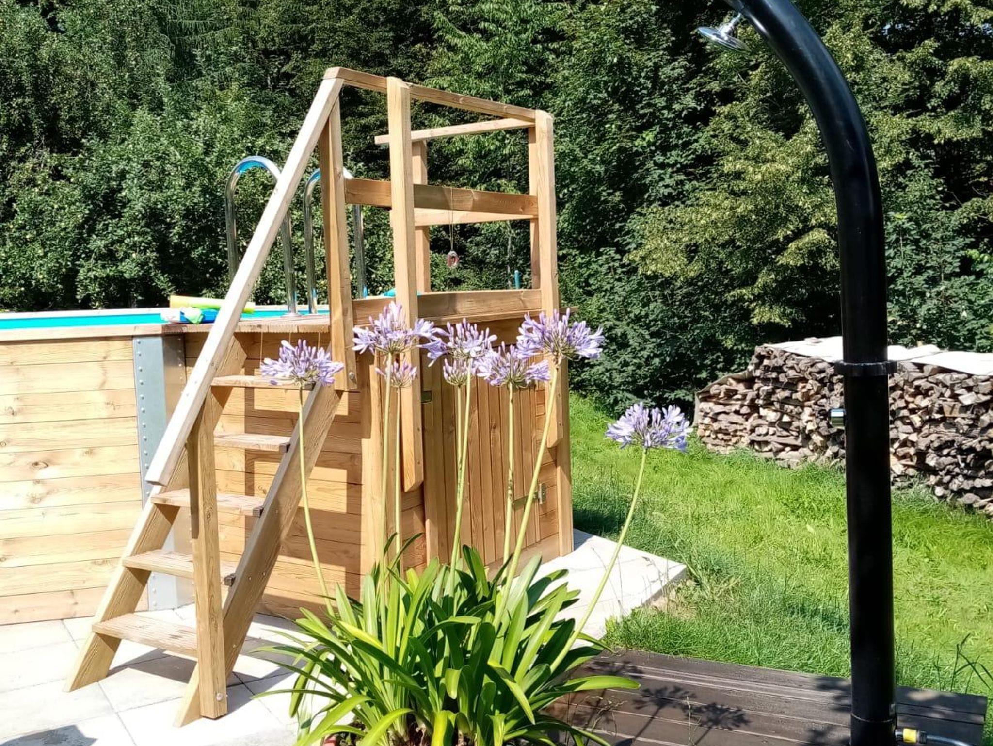 Ebenfalls steht Ihnen eine Holzterrasse mit Gartenmöbeln zur Verfügung. Auf dem Grundstück gibt es einen Parkplatz, Spielgeräte für Kinder und eine Grillmöglichkeit.