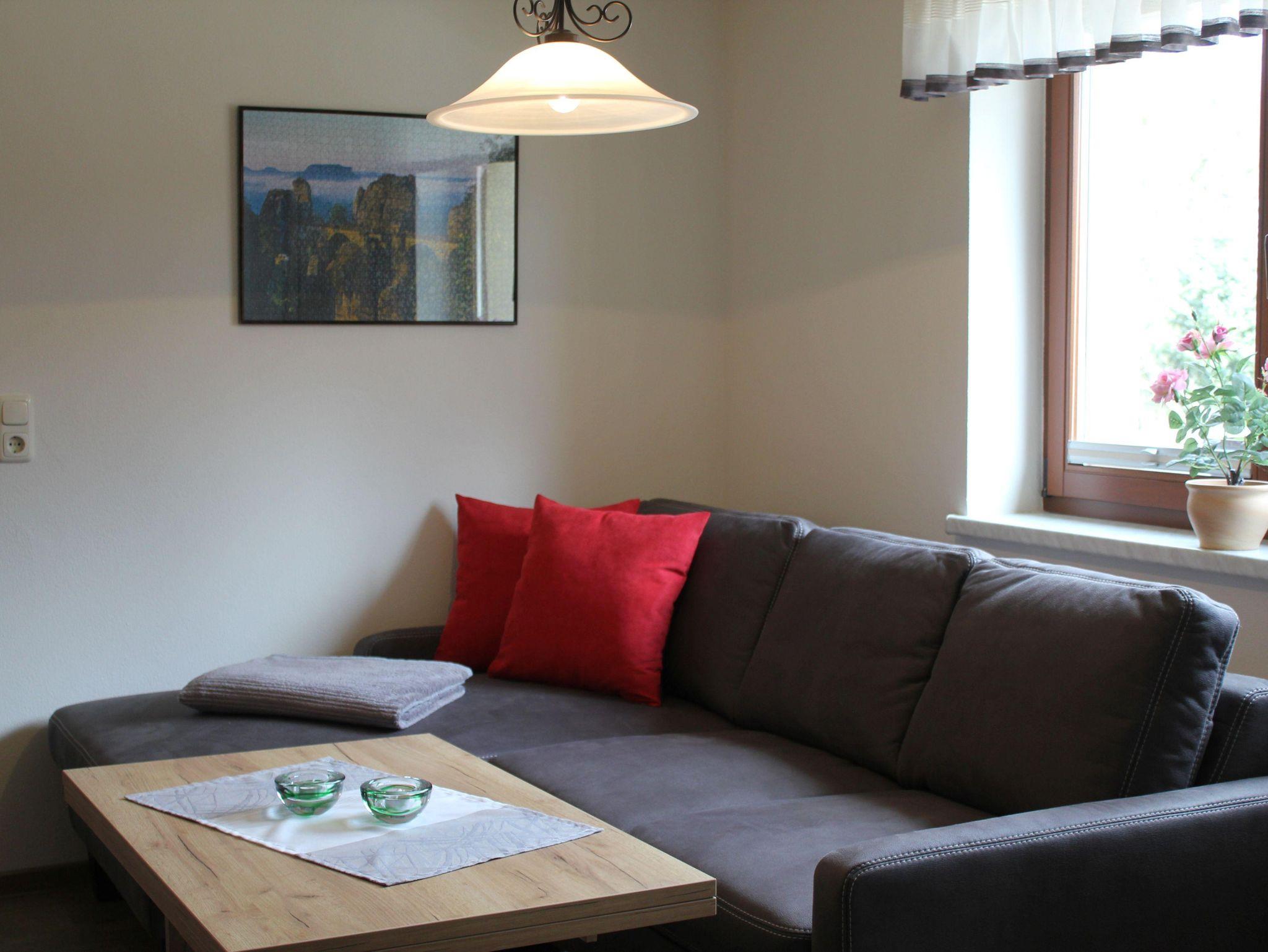 Die Ferienwohnung Kleine Bastei ist sehr ruhig gelegen und befindet sich in einem ehemaligen Dreiseitenhof im Erdgeschoss unseres Wohnhauses. Die Wohnung verfügt über einen Wohnraum, der mit gemütlicher Eckcouch ausgestattet ist und angrenzend eine moderne Küchenzeile. Weiterhin gehört ein Schlafzimmer mit Doppelbett und eine geräumige Dusche mit WC dazu.