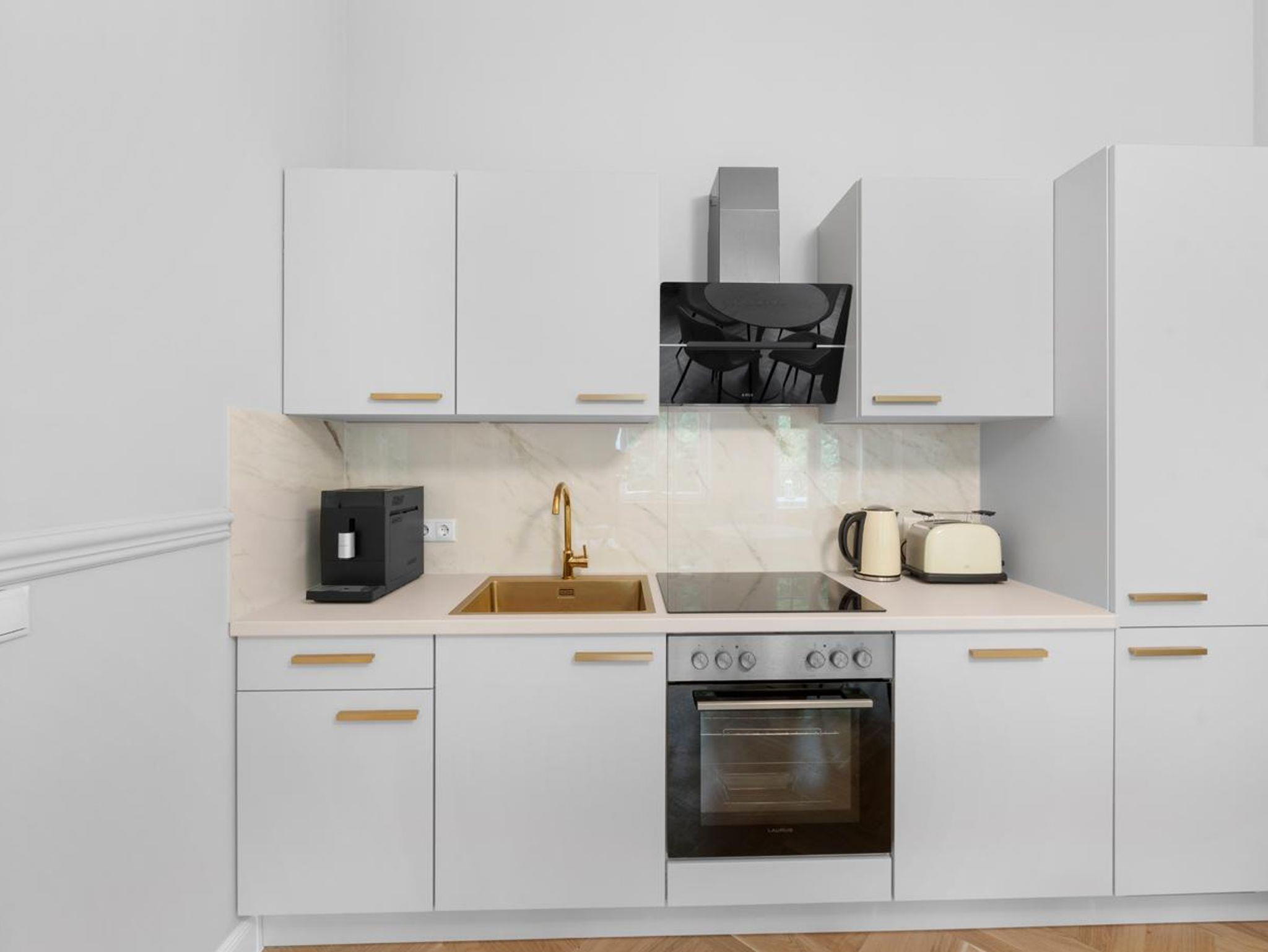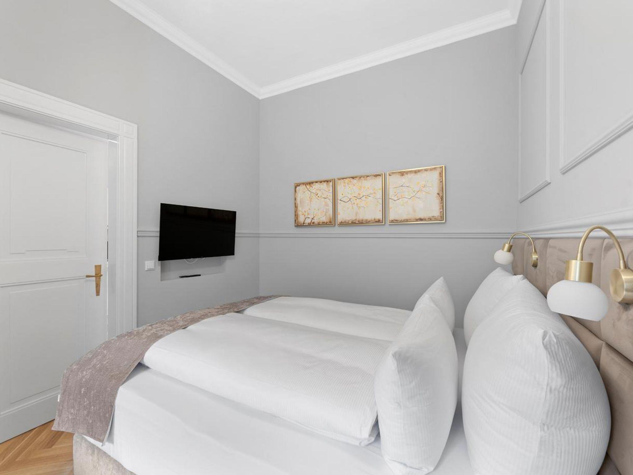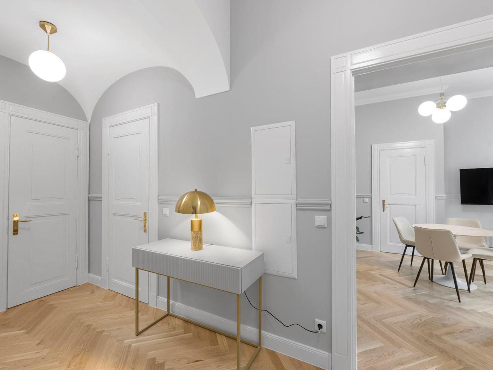 Genießen Sie hochwertige Boxspringbetten, luxuriöse Bettwäsche, elegantes Fischgrätenparkett und eine private Sauna. Entspannen Sie auf Ihrem Balkon. Historischer Charme trifft modernen Luxus - Ihr neues Zuhause fernab von Zuhause.