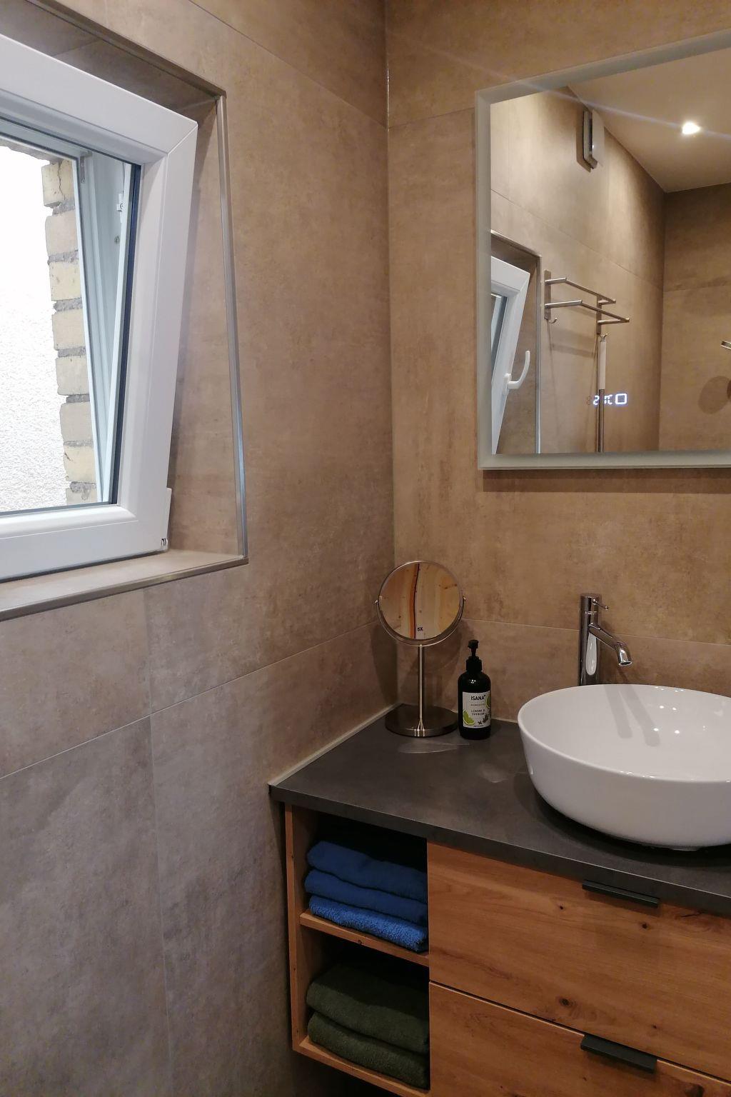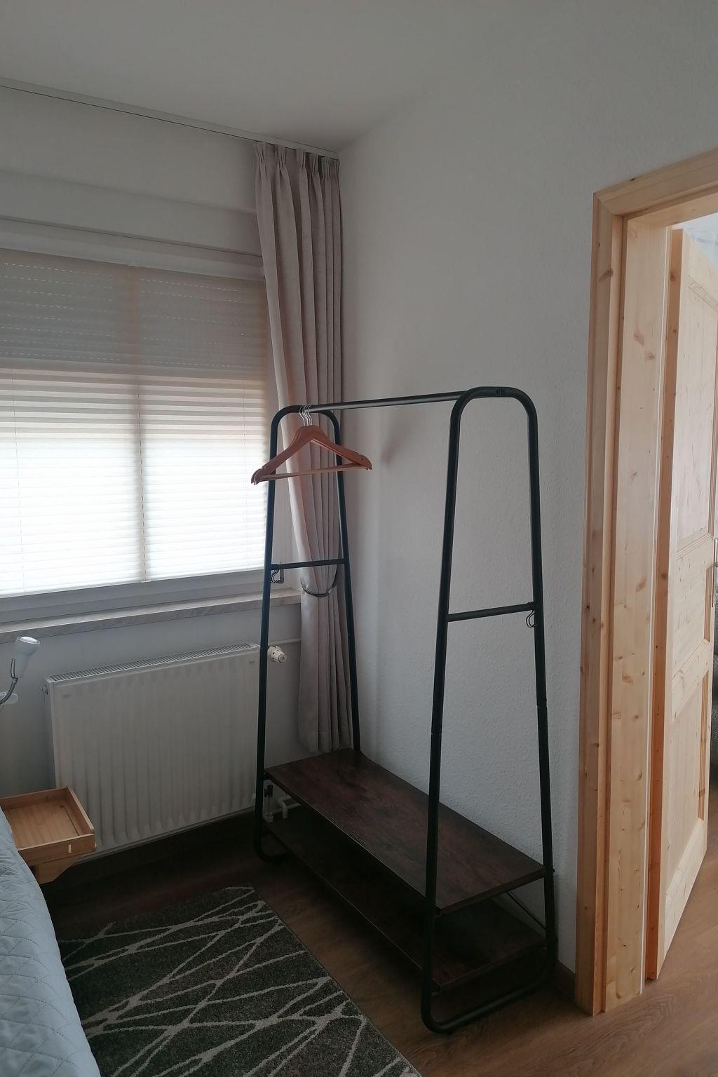 The flat is functionally and thoughtfully furnished to make your stay as pleasant as possible. In the living area, the sofa bed offers the option of an extra bed. The bedroom with two single beds can be darkened, which increases sleeping comfort. The flat has a bathroom with rain shower and underfloor heating, a separate toilet and a small, fine kitchen. Here you will find a two-ring induction hob, fridge, microwave, filter coffee machine, egg boiler and kettle - everything you need to prepare small meals. All rooms are equipped with blinds and insect screens.
