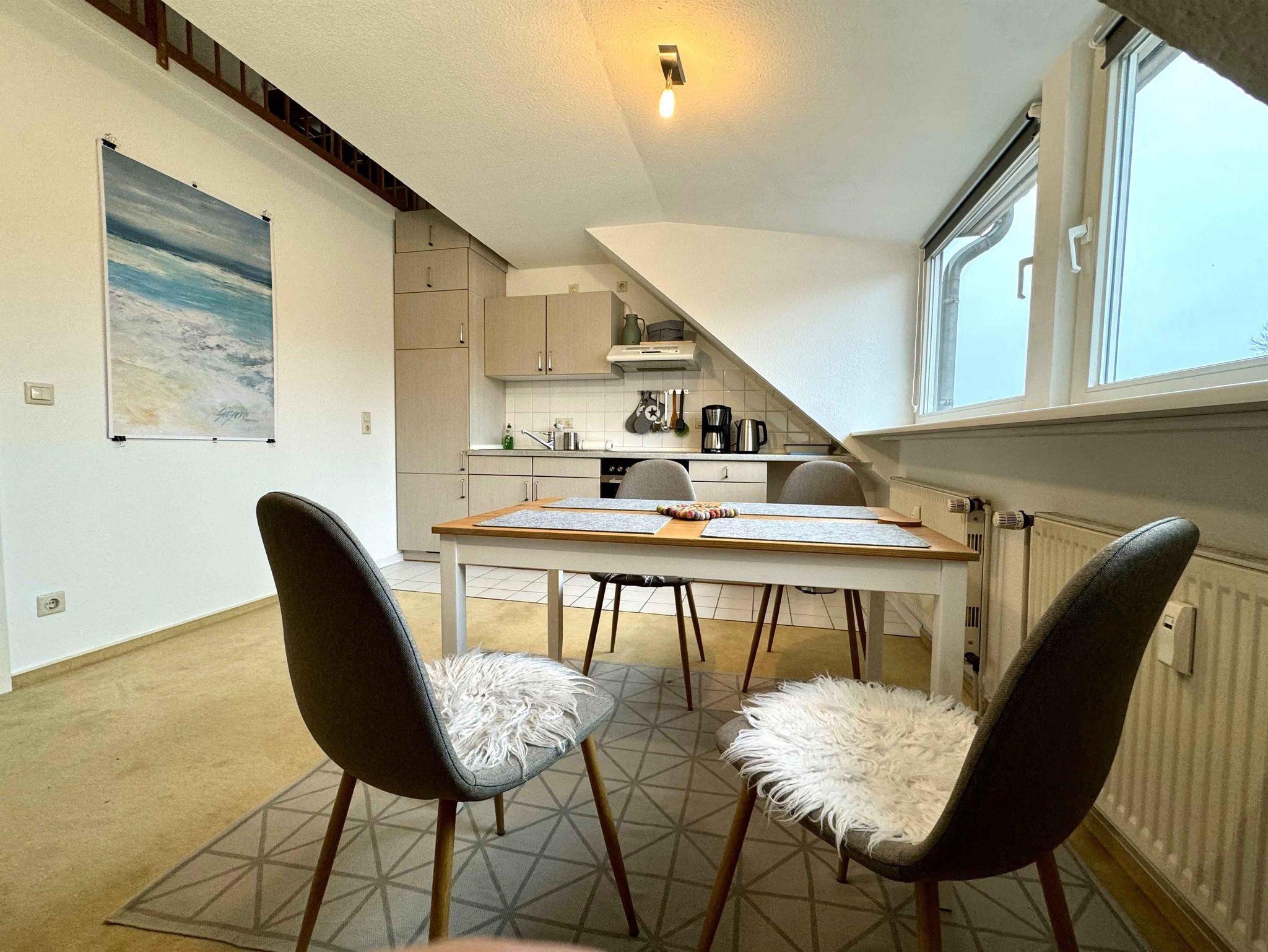 Maisonette-Wohnung auf zwei Ebenen. Auf jeder Ebene befindet sich ein Doppelbett (1,40x2,00 m).