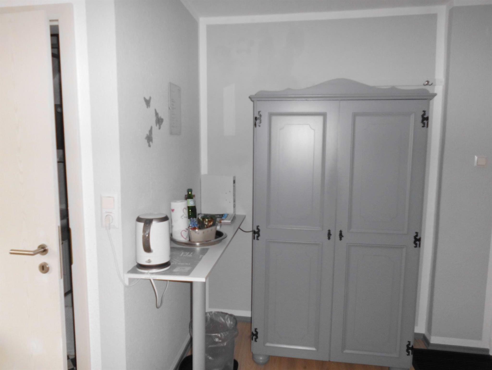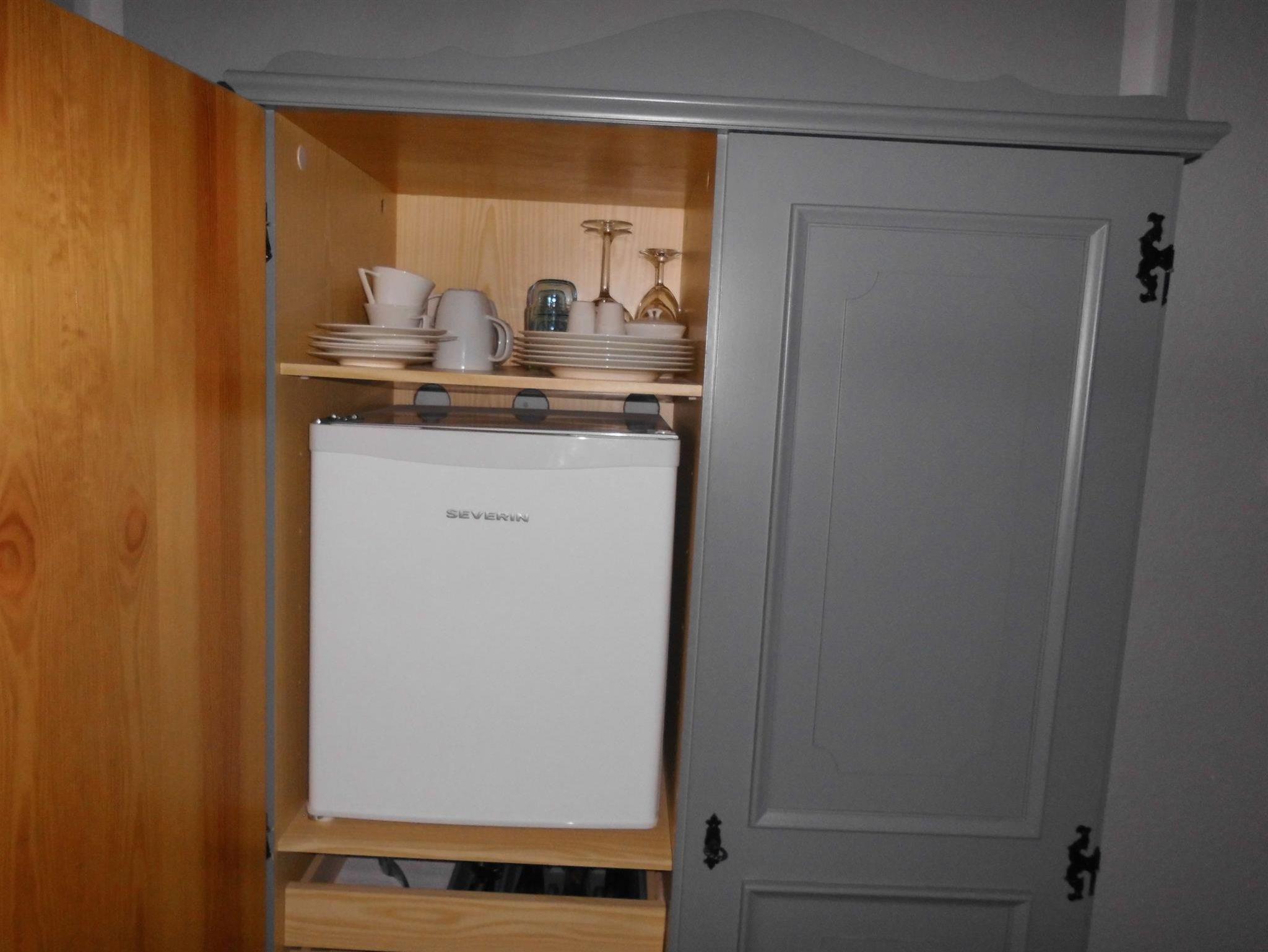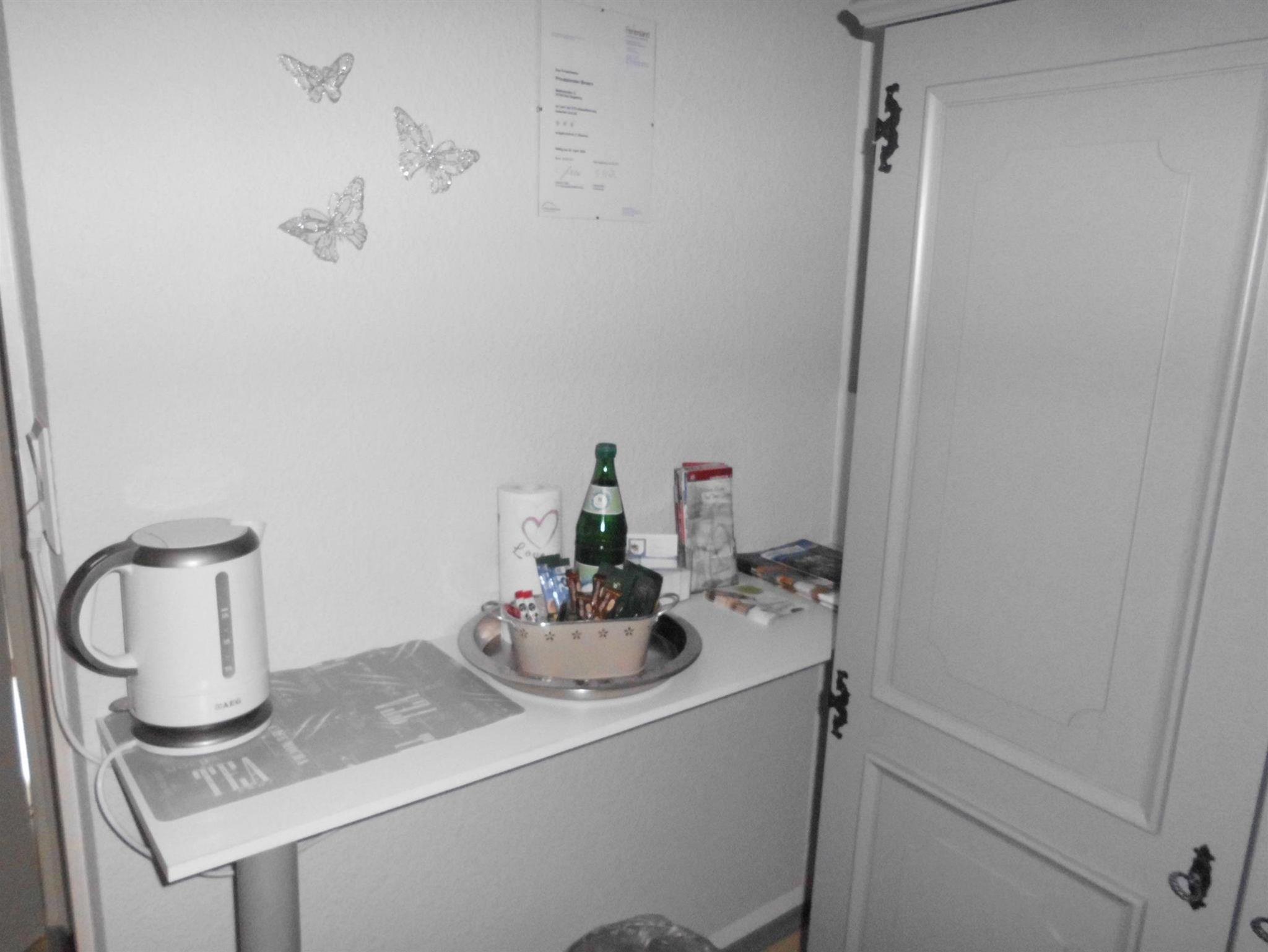 Sehr liebevolle, detaillierte Einrichtung, Wasserkocher, Kaffee, Tee, Kühlschrank, hervorragend!