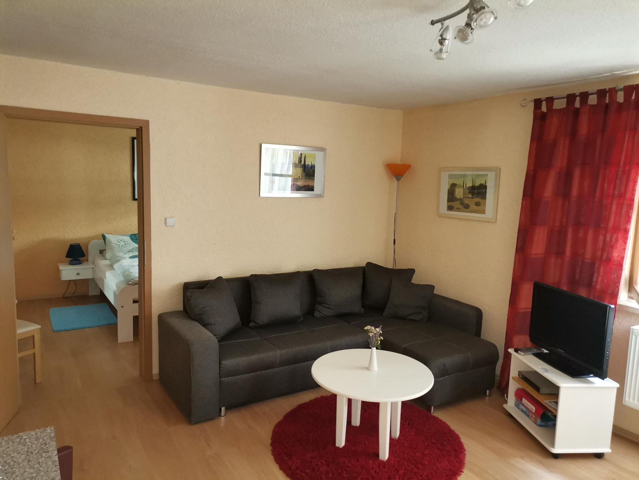 Sie wohnen: In einer gemütlichen 2-Zimmer-Nichtraucherwohnung (37²m) mit Sat-TV, kl. Küche, Bad (DU/WC) und Diele.