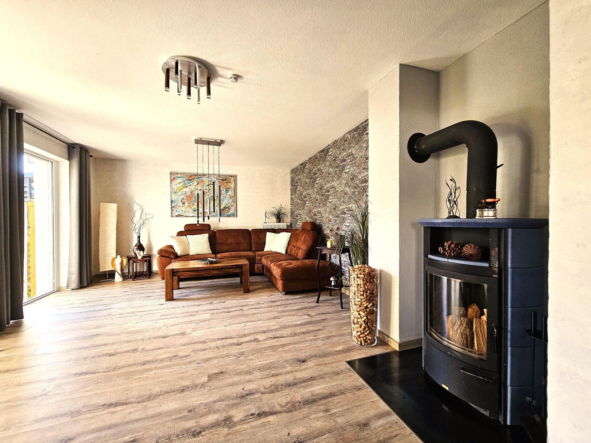 Bei einer Buchung bis zu 4 Personen steht die Wohneinheit 1 mit ca. 130 m² zur Verfügung. Im EG befinden sich ein großer offener Wohn-/Essbereich mit Kaminofen und eine voll ausgestattete Küche. Ein Gäste-WC, ein Flur mit Garderobe und das Homeoffice-Büro liegen ebenso dort. Das OG bietet Ihnen zwei Schlafräume mit Doppel- und Queensize-Betten, einen Wohnbereich (mit Ausziehcouch) und ein Bad mit Dusche, WC und Badewanne.