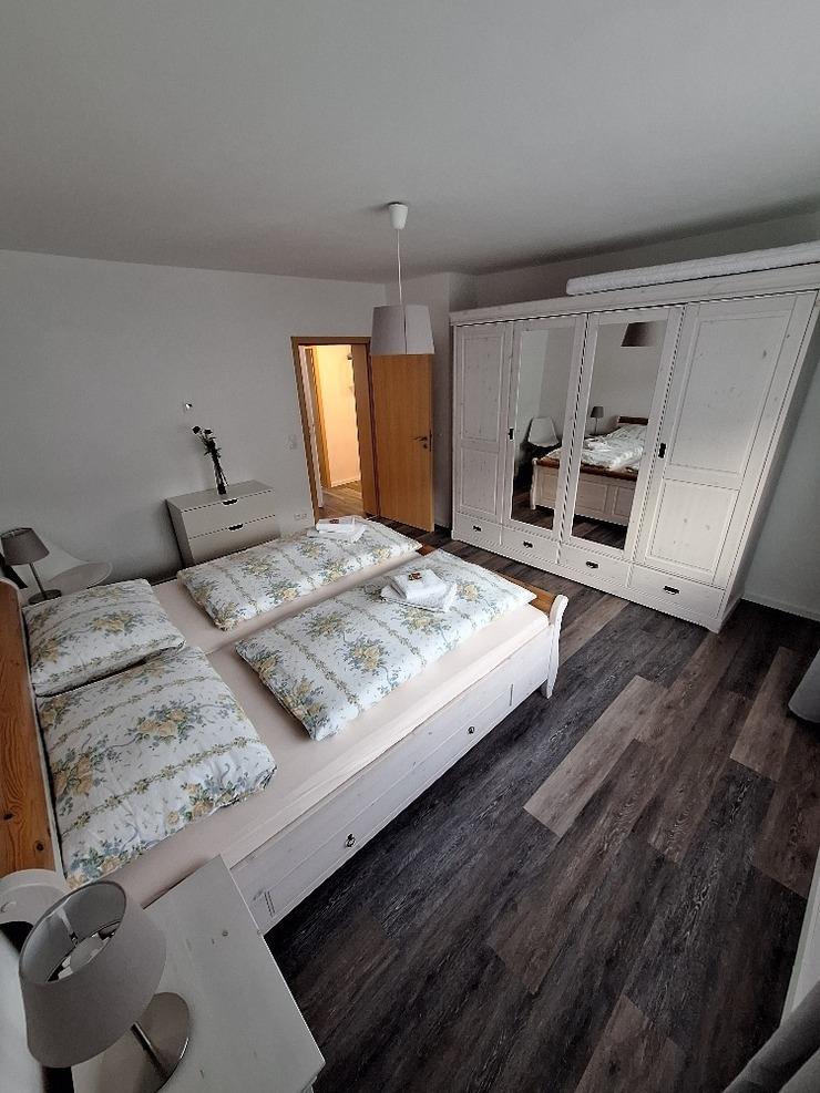 Die im Ortsteil Sooden gelegene Ferienwohnung verfügt über 3 Zimmer, die sich über 90qm erstrecken. Ruhig gelegen in einer Einbahnstraße befindet sich die Wohnung im ersten Stock unseres Hauses und wurde im Frühjahr/Sommer 2021 komplett saniert. Mit zwei Schlafzimmern, einer Küche, einem großen Wohn-/Esszimmer mit Schlafsofa und einem eigenen Badezimmer mit Dusche bietet sie ausreichend Platz für bis zu 4 Personen. Anschließend an den Wohnbereich befindet sich ein großer Balkon, der einen herrlichen Blick auf den Söder Wald bietet.