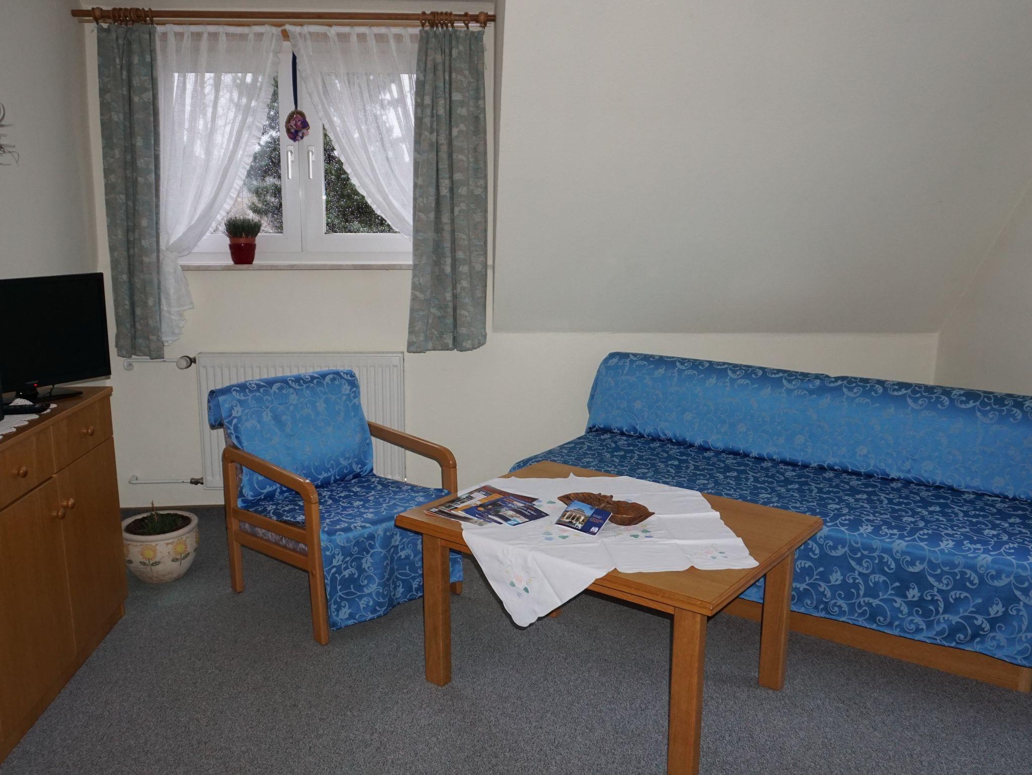 Unser gemütliches NR- Appartement 3 (55qm) mit Wohn-und Schlafraum (Doppelbett 2,00m x 2,00m), Küche und Dusche/WC ausgestattet liegt in der 1. Etage. Auf Wunsch ist Brötchenservice möglich oder Sie genießen mit Aufpreis unser leckeres Frühstücksbuffet in unserer nebenstehenden Pension.