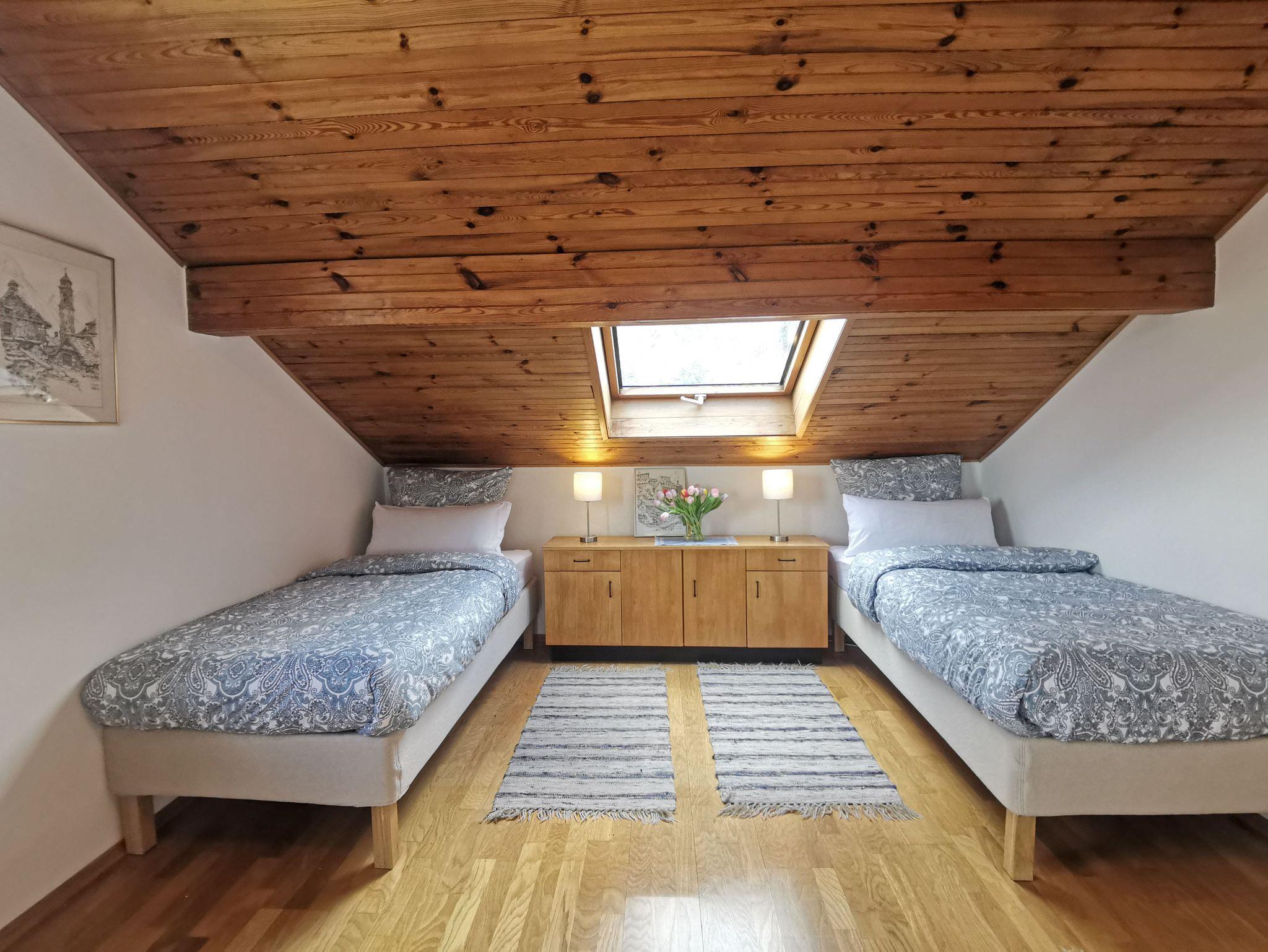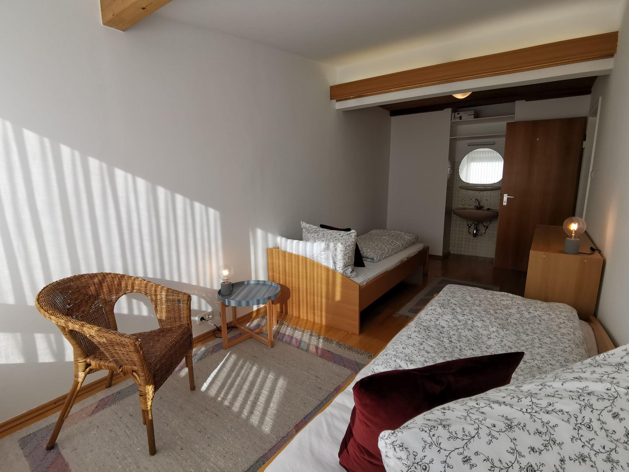 Das Zimmer Froschbachtal ist ein weiteres Zimmer mit zwei Einzelbetten, ideal für Kinder/Geschwister (auch hier ausreichend von Enkeln getestet). Das Zimmer verfügt über ein eigenes Waschbecken und einen herrlichen Blick, ähnlich zu Frankenwald.