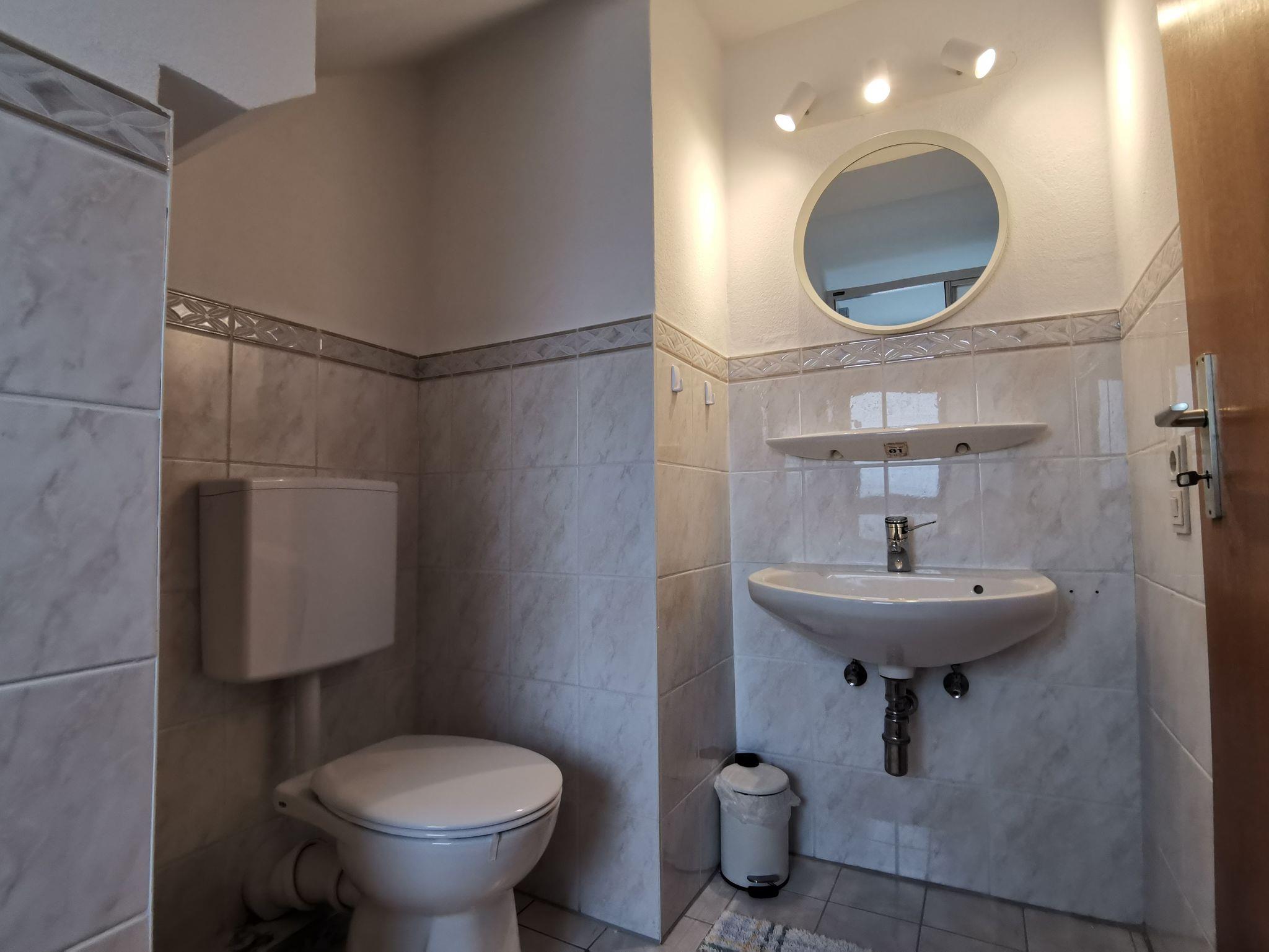 Es befinden sich neben dem eigenen Bad des Zimmers Spitzberg zwei weitere Bäder mit Dusche/Badewanne und WC im Obergeschoss.