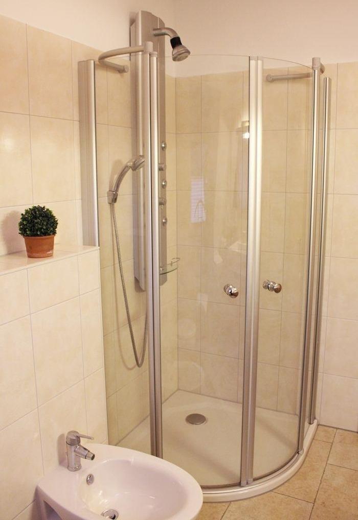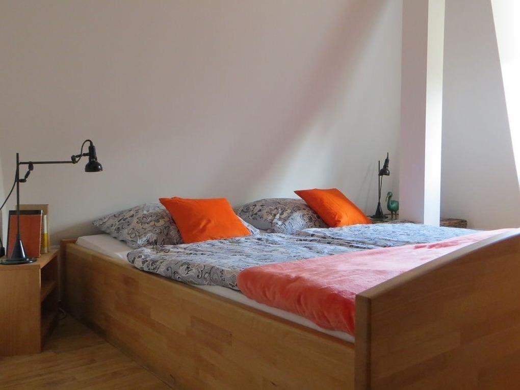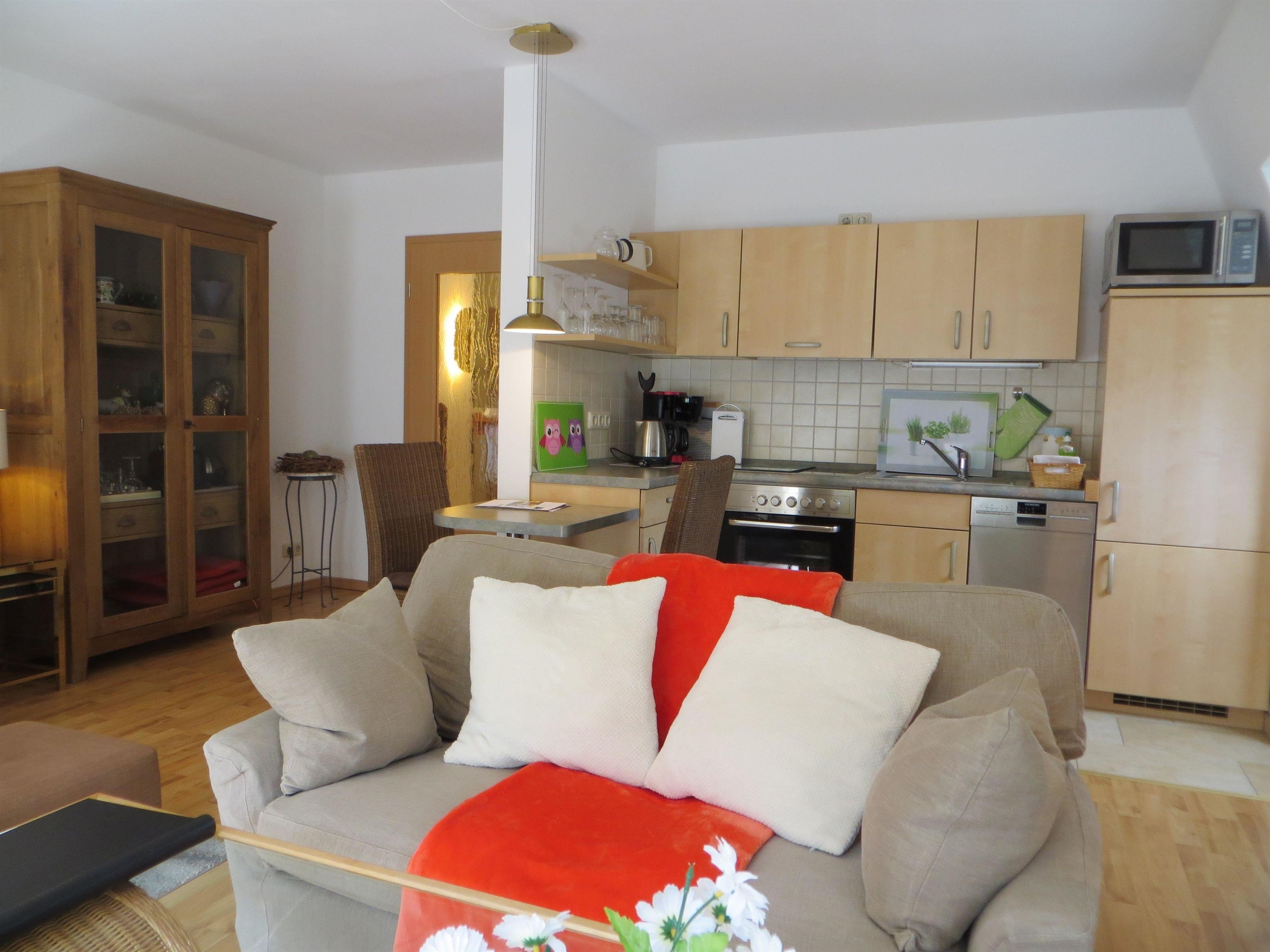 Die Wohnung befindet sich im Obergeschoss, ist ca. 60 Quadratmeter groß und hat ein Badezimmer, ein Schlafzimmer und ein Wohnzimmer mit integrierter Küche. Es besteht die Möglichkeit, dass noch zwei weitere Personen auf einem großen Bettsofa im Wohnzimmer übernachten können.