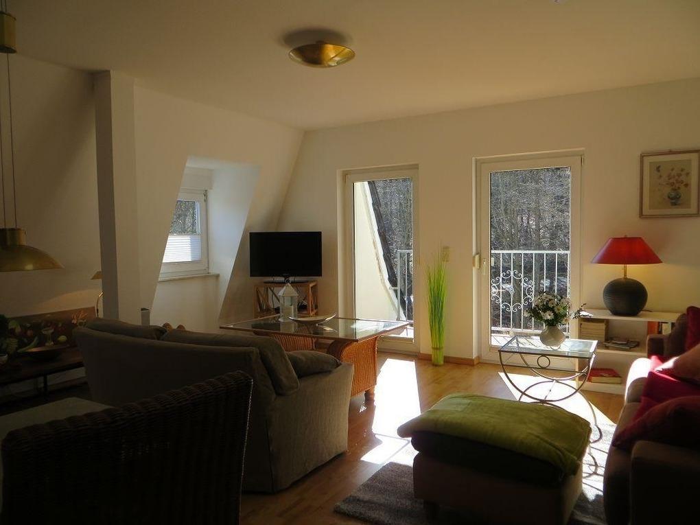 Sie haben einen Südbalkon und rundum einen wunderschönen unverbauten Blick in den Wald oder auch in den gegenüberliegenden Kurpark.