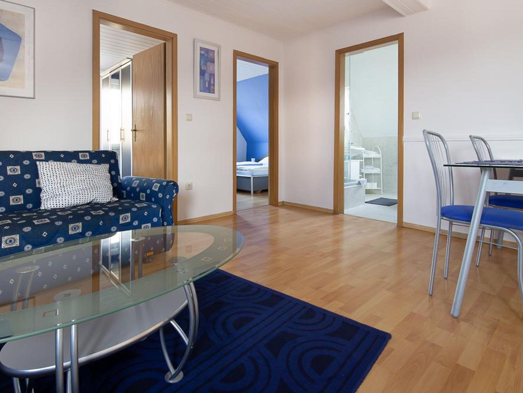 Die Ferienwohnung Blue Sky befindet sich im Herschaftshaus in der 2. Etage (Dachgeschoss), hat eine Größe von 60 m² und ist ideal für 1-4 Personen.