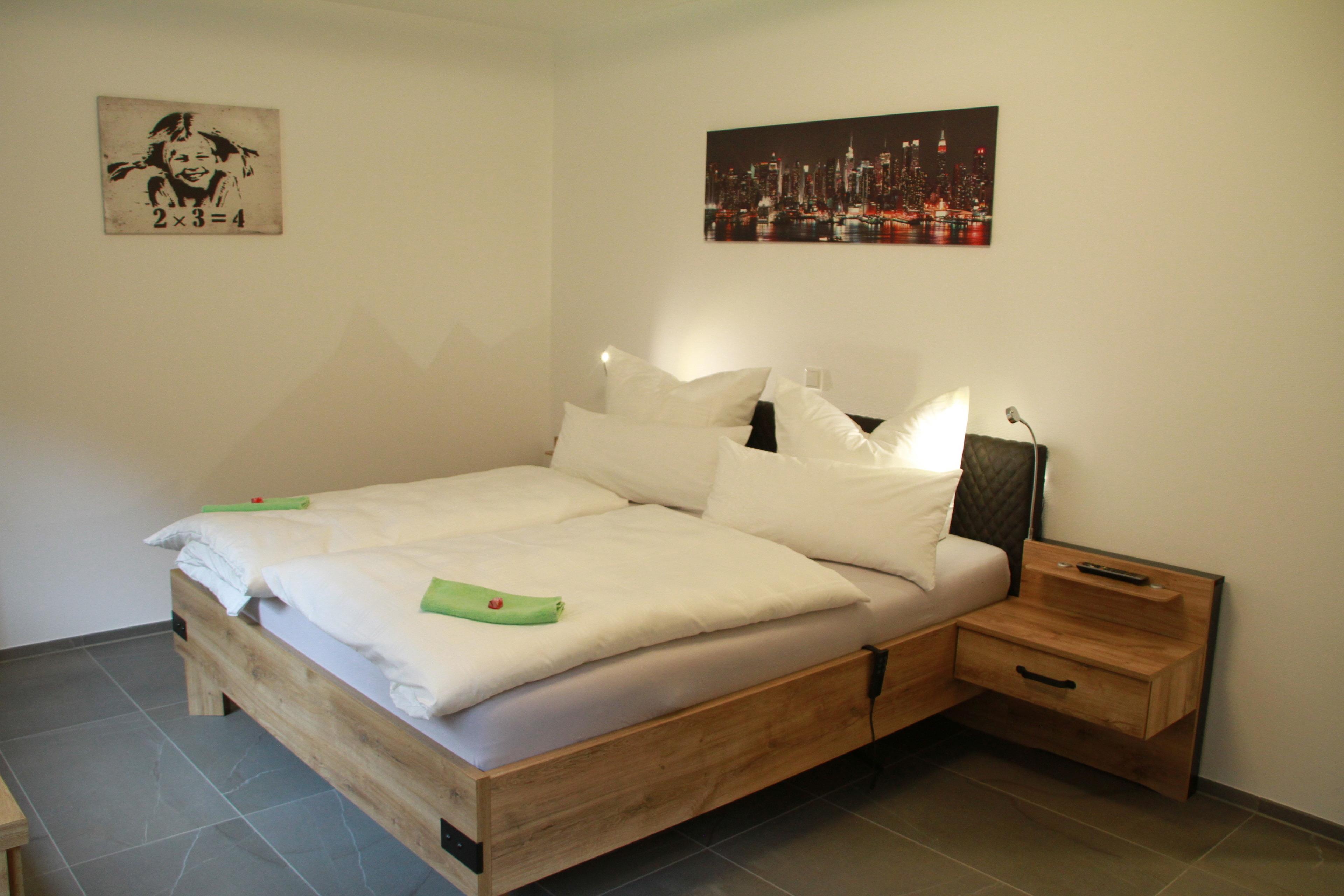 1 Bad mit Badewanne und 1 Bad mit Dusche stehen zur Verfügung. Die Wohnung bietet außerdem eine möblierte 73 m² große Dachterrasse mit Blick auf die Kneipp-Kuranlage und umliegende Wanderwege. Die offene Küche ist mit Backofen, Tellerwärmer, Mikrowelle, Herd, Kühl-Gefrierkombi, Kaffeevollautomat, Wasserkocher, Toaster, Kochgeschirr, Essgeschirr, Besteck und mit Gläsern ausgestattet. Eine Waschmaschine und ein Wäschetrockner wie auch ein Bügeleisen sind vorhanden. Auf der gemütlichen Couch können Filme auf einem 66 Zoll TV-Gerät geschaut werden. Das Licht am Abend kann individuell mit Fernbedienungen geregelt werden. Gaststätten, Cafés, Bäckereien mit Frühstücksmöglichkeiten und Geschäfte gibt es im Stadtzentrum, welches ca. 900 m entfernt ist.