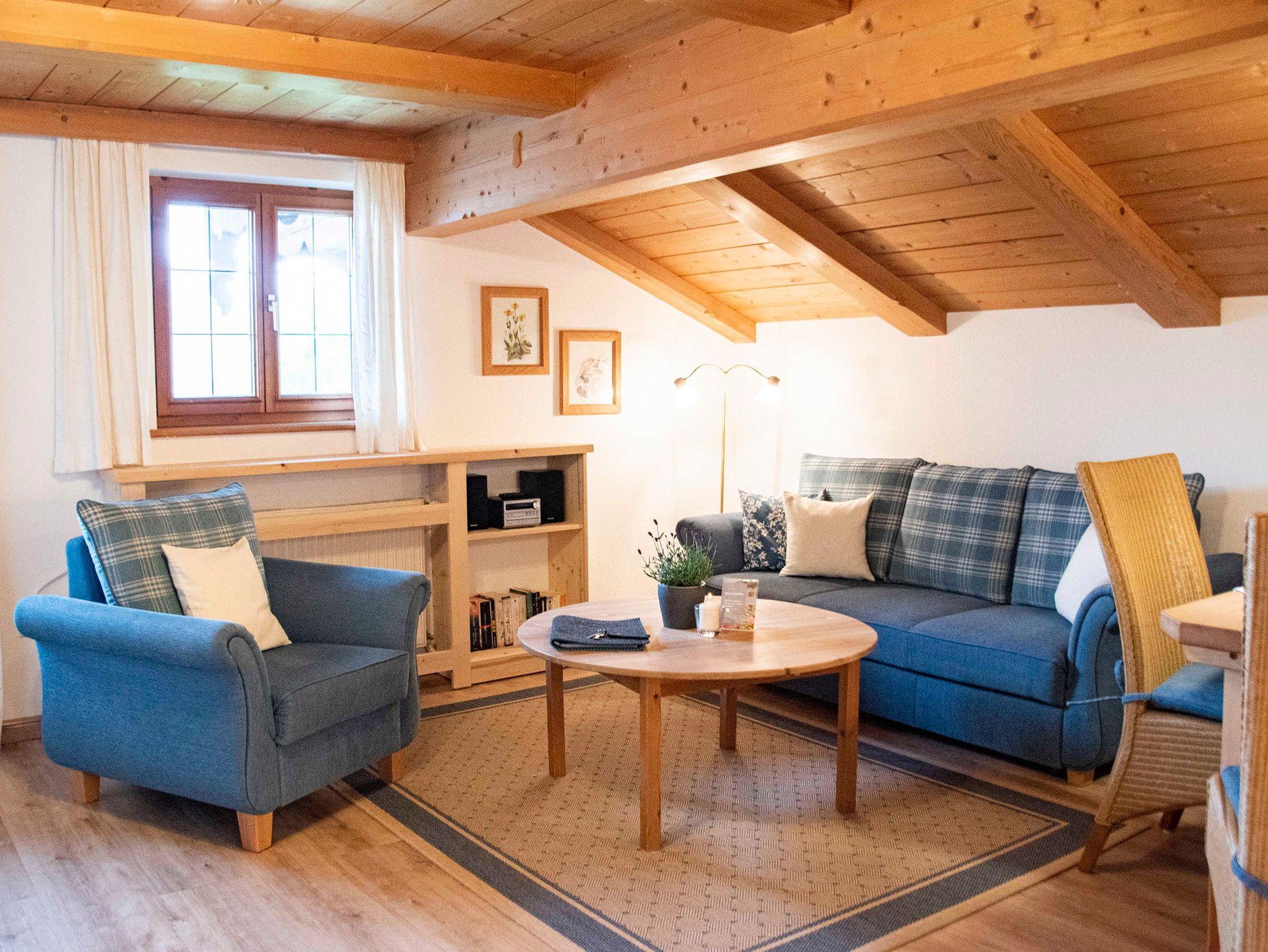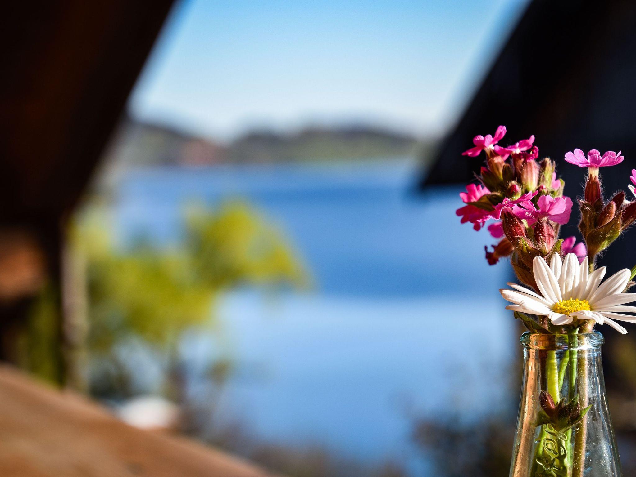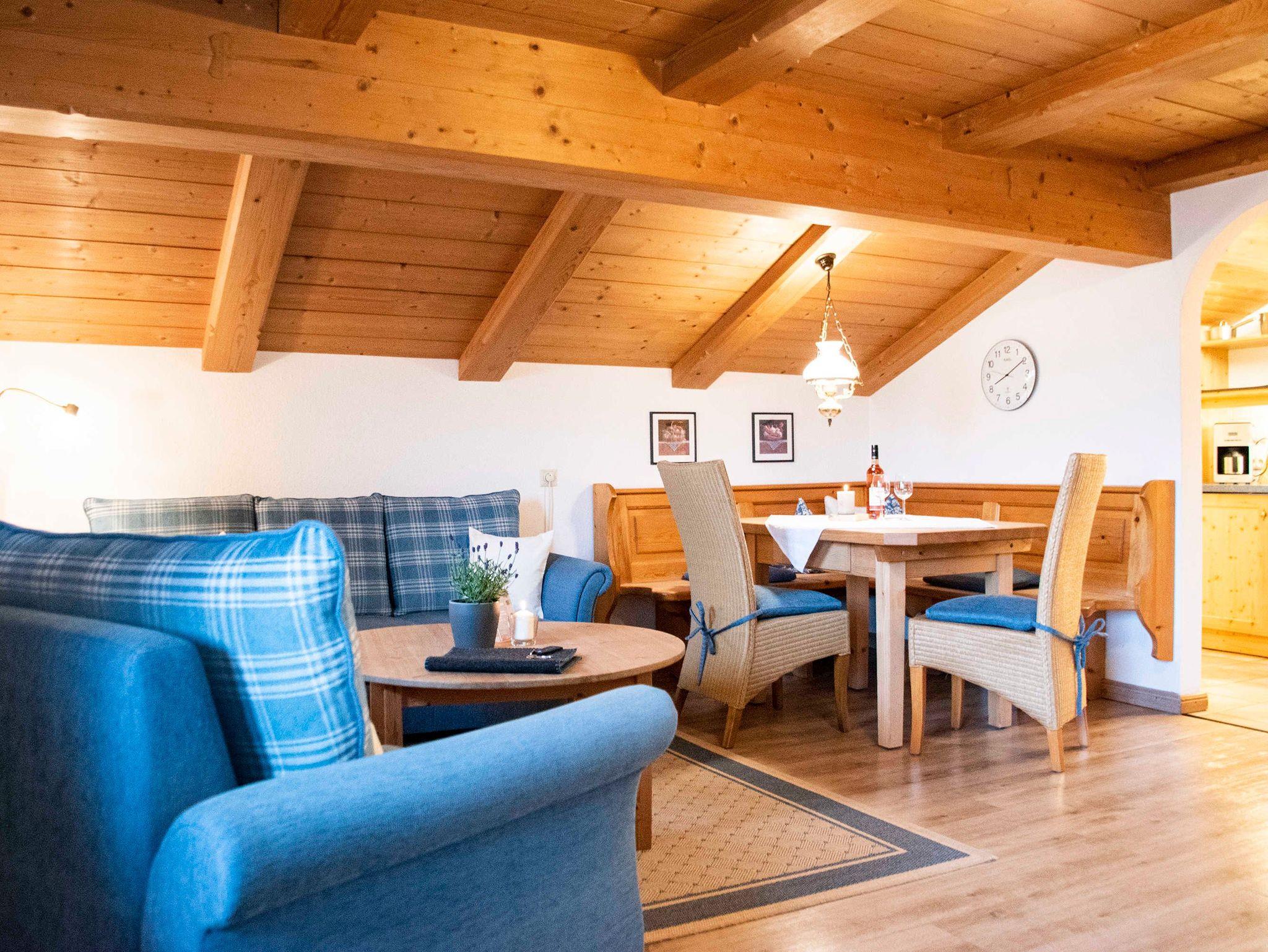 Unsere großzügige Ferienwohnung 'Troadkasten' befindet sich im Dachgeschoss, ist 60 m² groß und ist für 2 Personen geeignet. Vom Balkon mit Morgensonne lässt sich der traumhafte Berg- und Seeblick genießen.