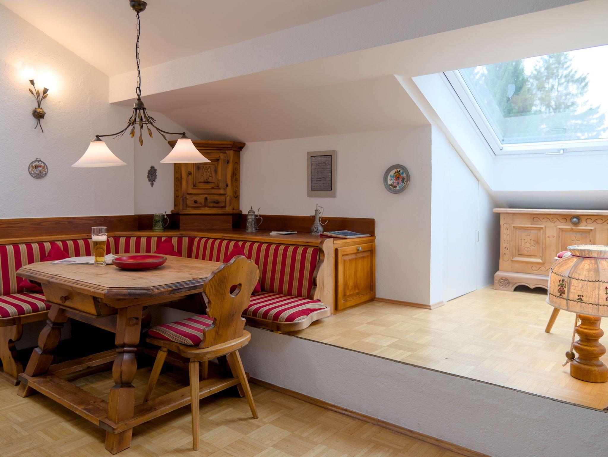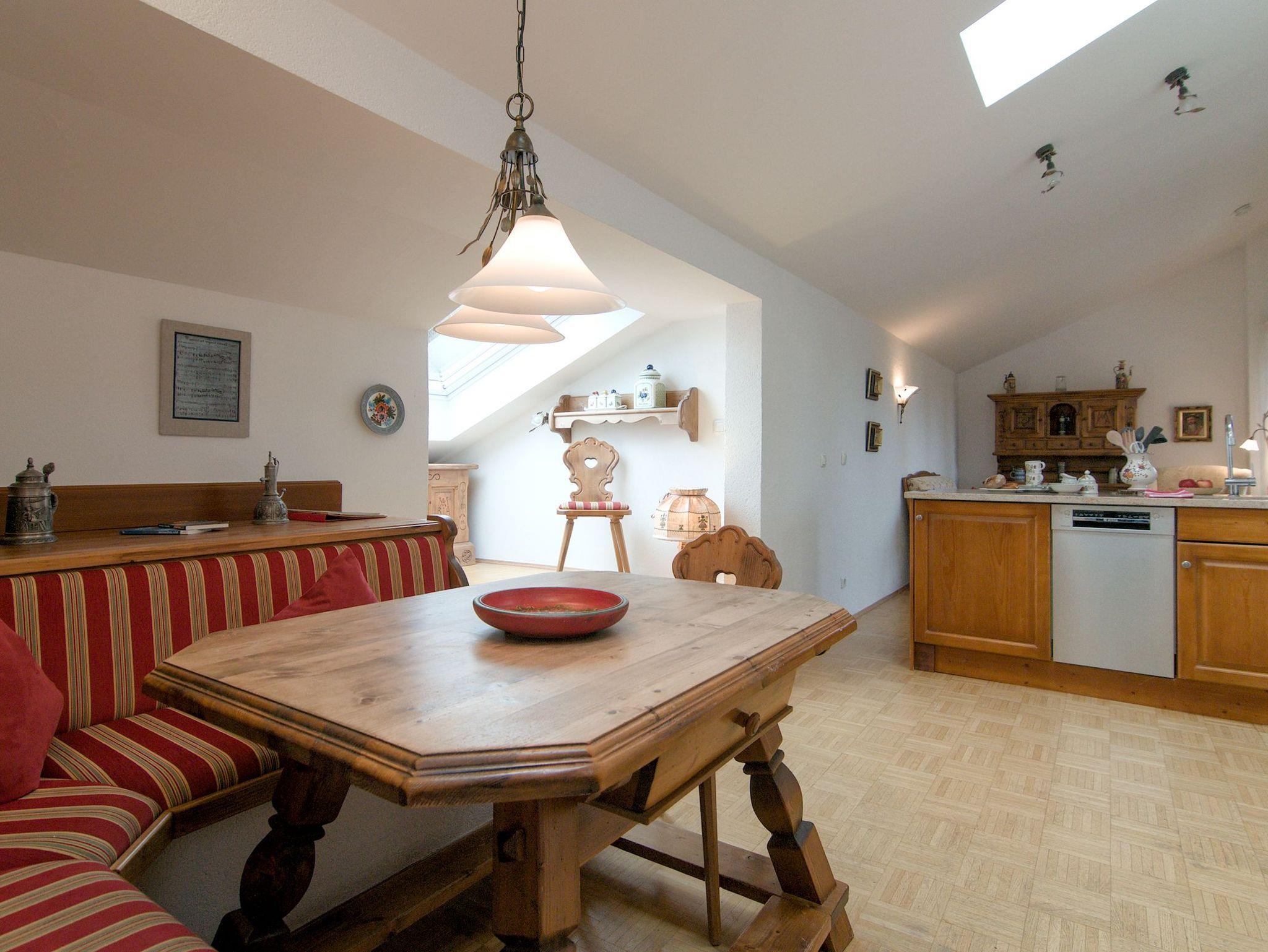 Die Wohnung besticht durch ein großzügiges Wohnzimmer mit offener, voll ausgestatteter Küchenzeile sowie einem großen, über Eck liegenden Balkon, auf welchem Sie die gute Bergluft bei einem Glas Wein genießen können.