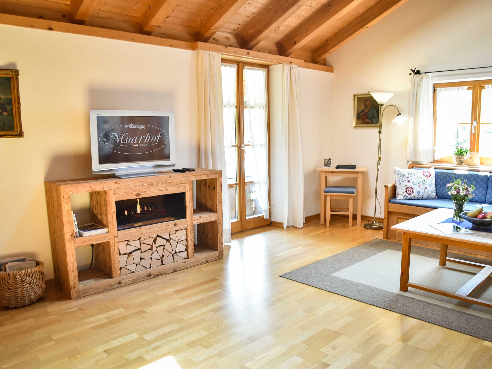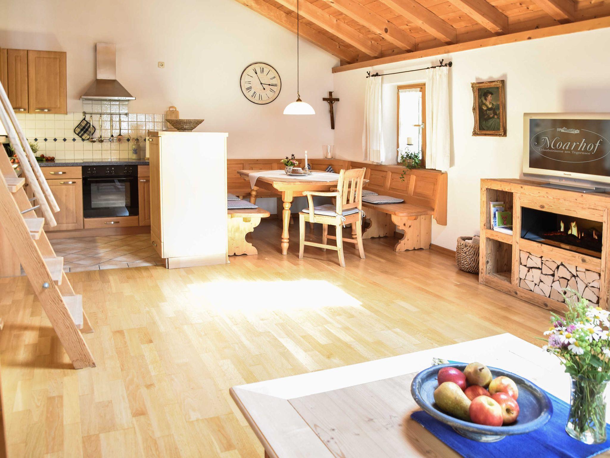 Traumhaft wohnen in unserer exklusiv und zeitgemäß ausgestatteten Ferienwohnung ?Bauernsuite? für Nichtraucher auf 120 m²: Sie ist für 2 bis 4 Personen geeignet, allergikerfreundlich ausgestattet mit Vollholzmöbeln, Parkett- und Fliesenböden. Die Wohnung verfügt über zwei Bäder, zwei Balkone nach Süden und Süd-Westen mit einzigartigem Ausblick in die Tegernseer Bergwelt sowie eine offene Küche.
